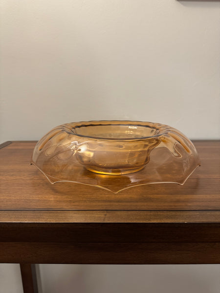 Marigold Carnival Glass Rays-Ribbons-Ruffled Bowl Out of stock