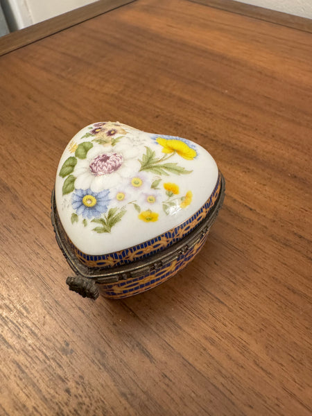 Vintage Porcelain Heart Shaped Jewelry Trinket Box $24.99