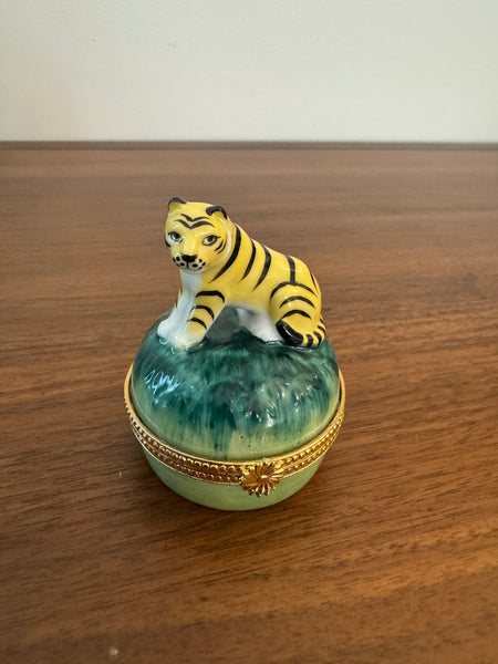 Vintage Rochard Limoges Porcelain Trinket Box Tiger Out of stock