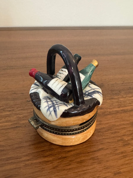 Vintage Porcelain Trinket Box Wine Bottles Basket Shaped Out of stock