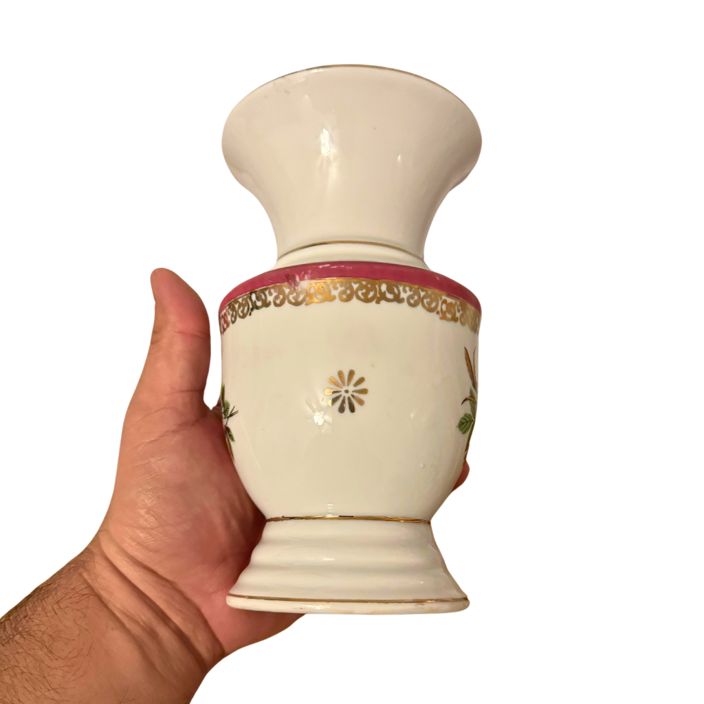 This lovely Sta Rosa Pedreira Porcelain Vase is a vintage treasure adorned with lavish gold guild detailing and captivating floral decals. It exudes timeless elegance and is guaranteed to elevate any space with its unparalleled beauty and craftsmanship.