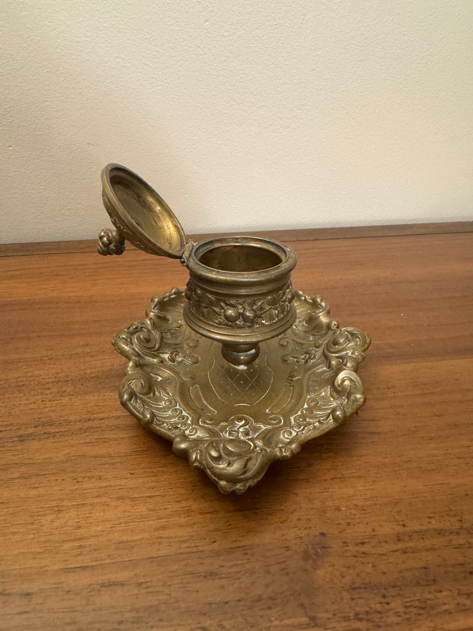 Antique Ornated Solid Brass Inkwell