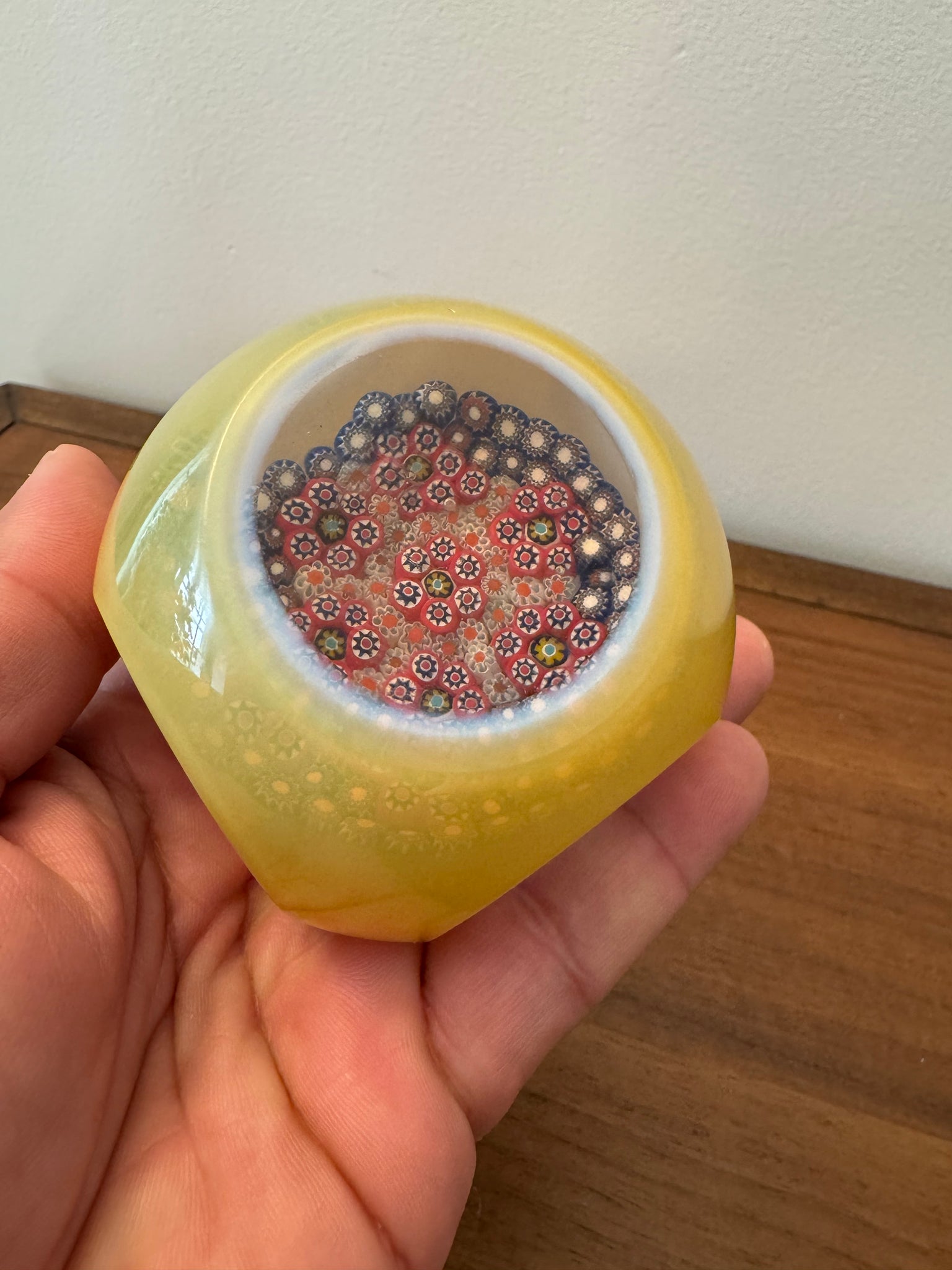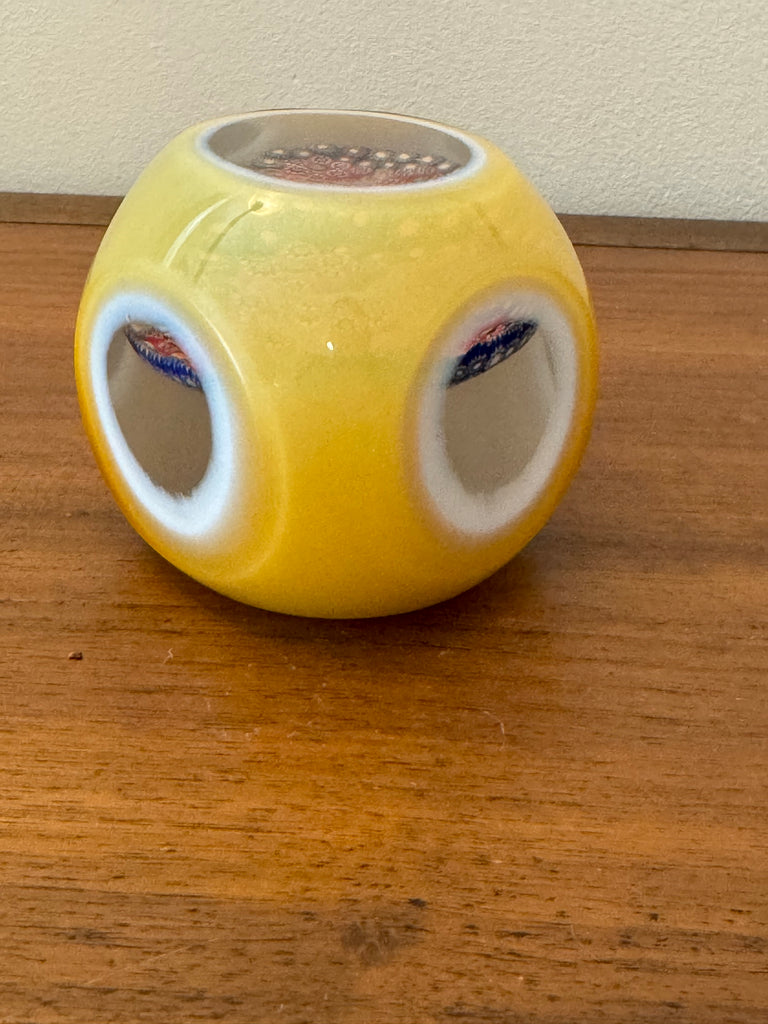 Murano Faceted Millefiori Blown Glass Handmade Paperweight
