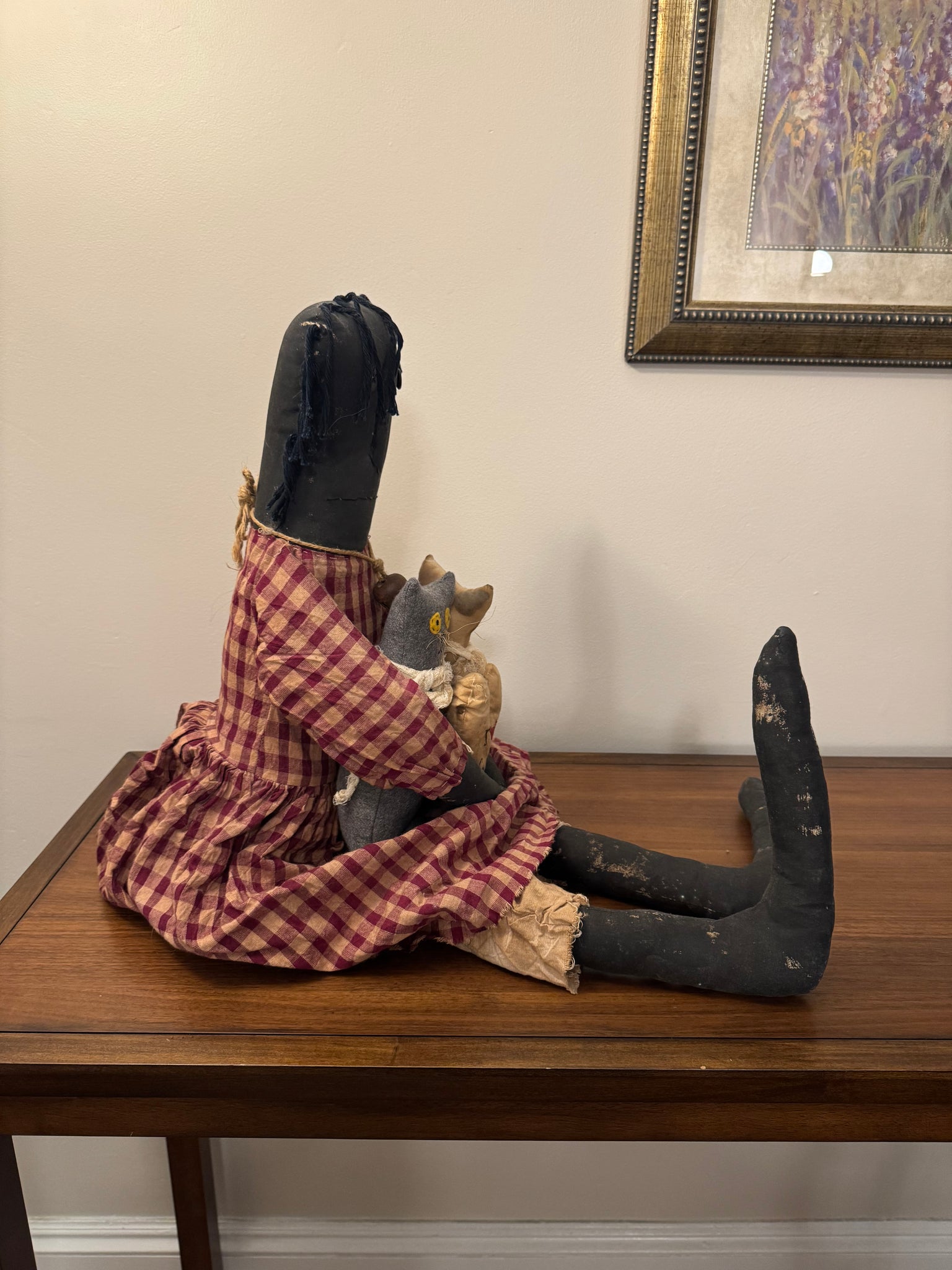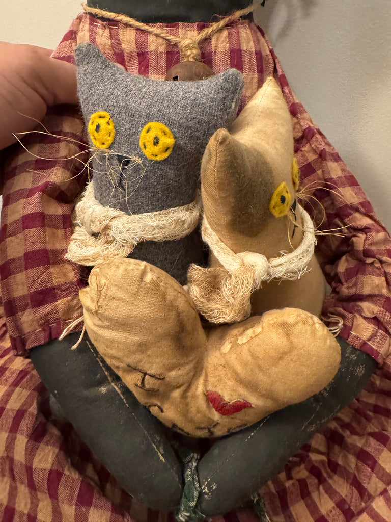 Early American Primitve Style Decor Doll with Cats