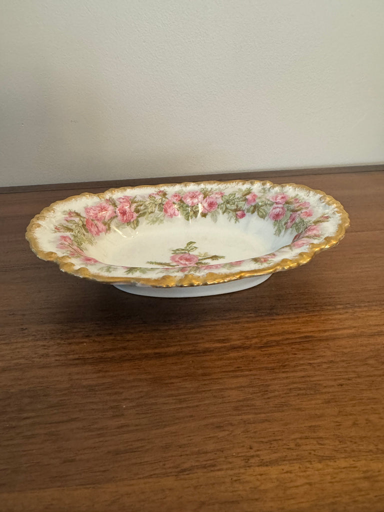 Antique Collectable Limoges French Fine Porcelain China Small Oval Bowl Jean Pouyat