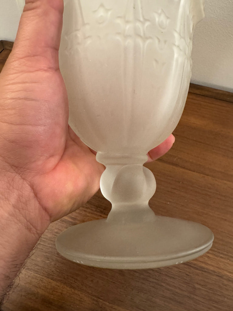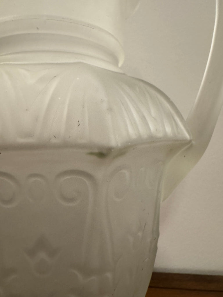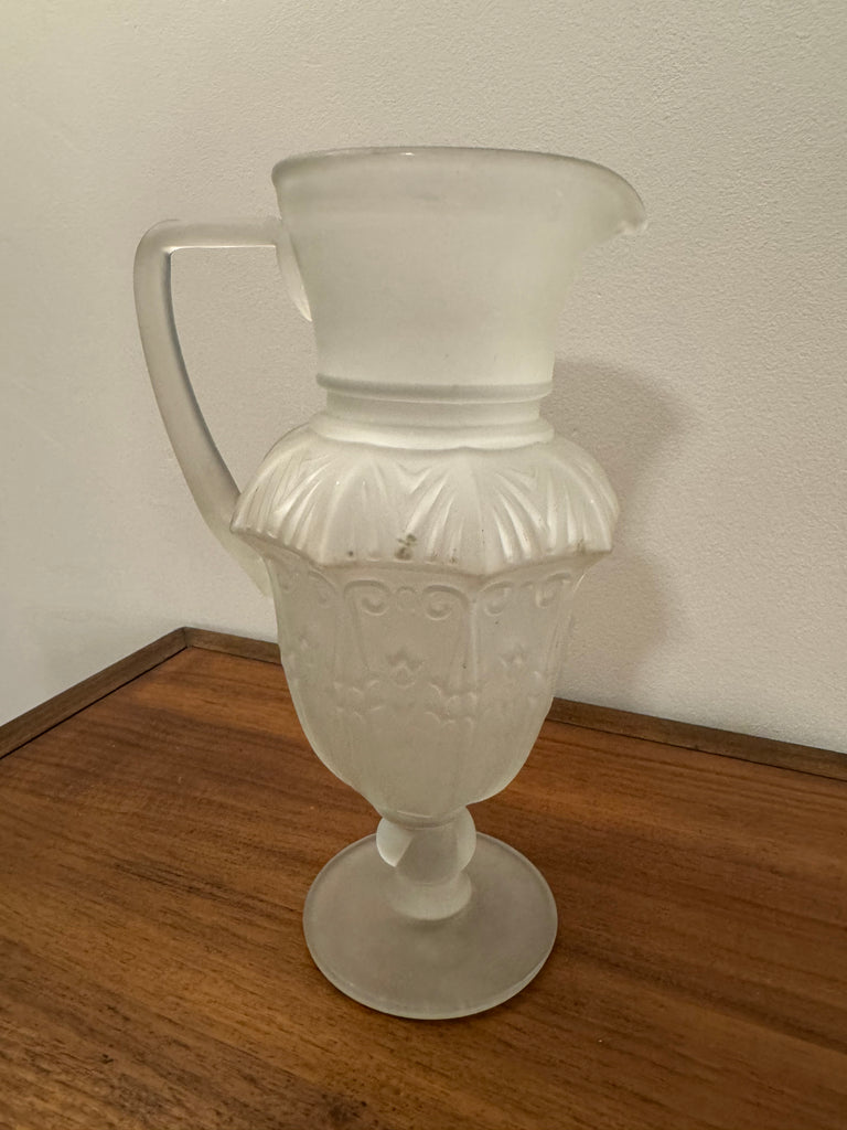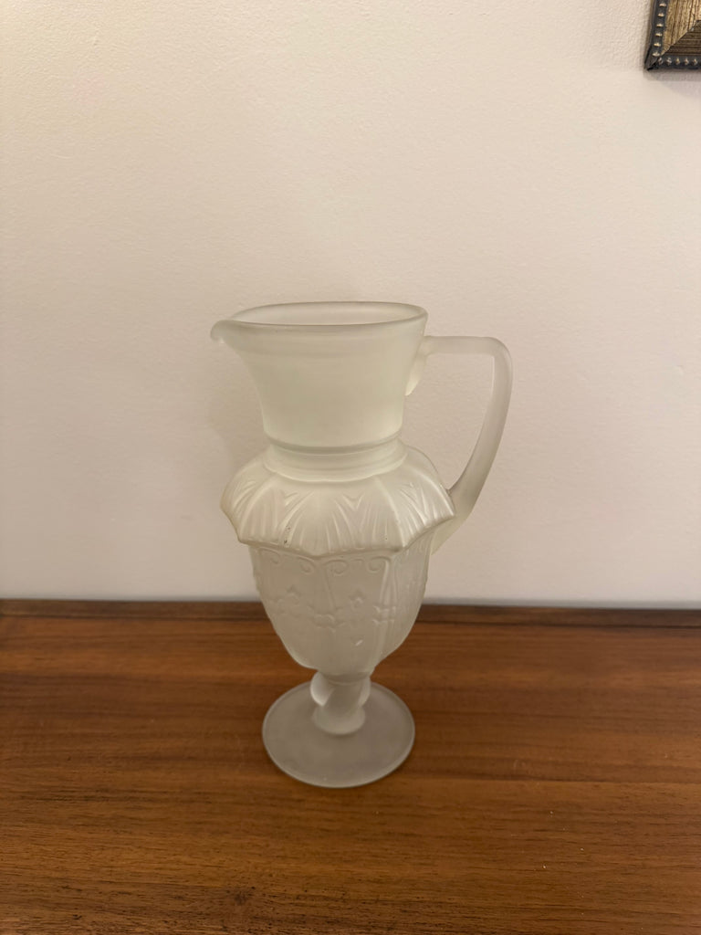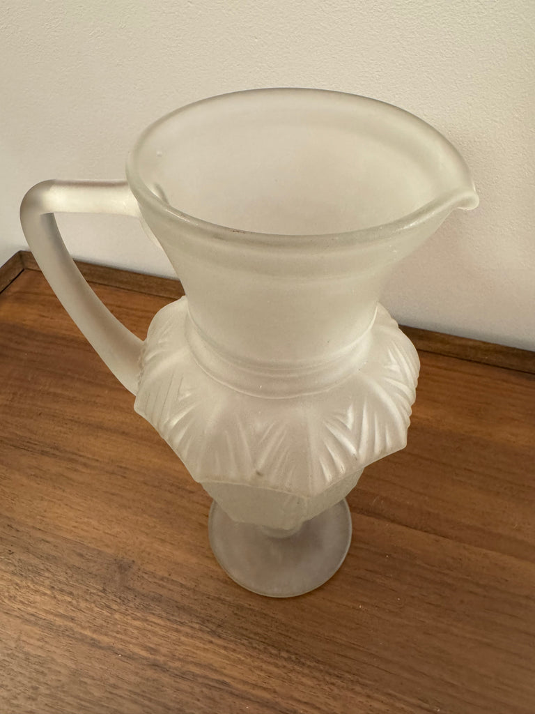 Vintage Frosted Matte Victorian Art Deco Style Stemmed Handle Glass Pitcher Vase RARE