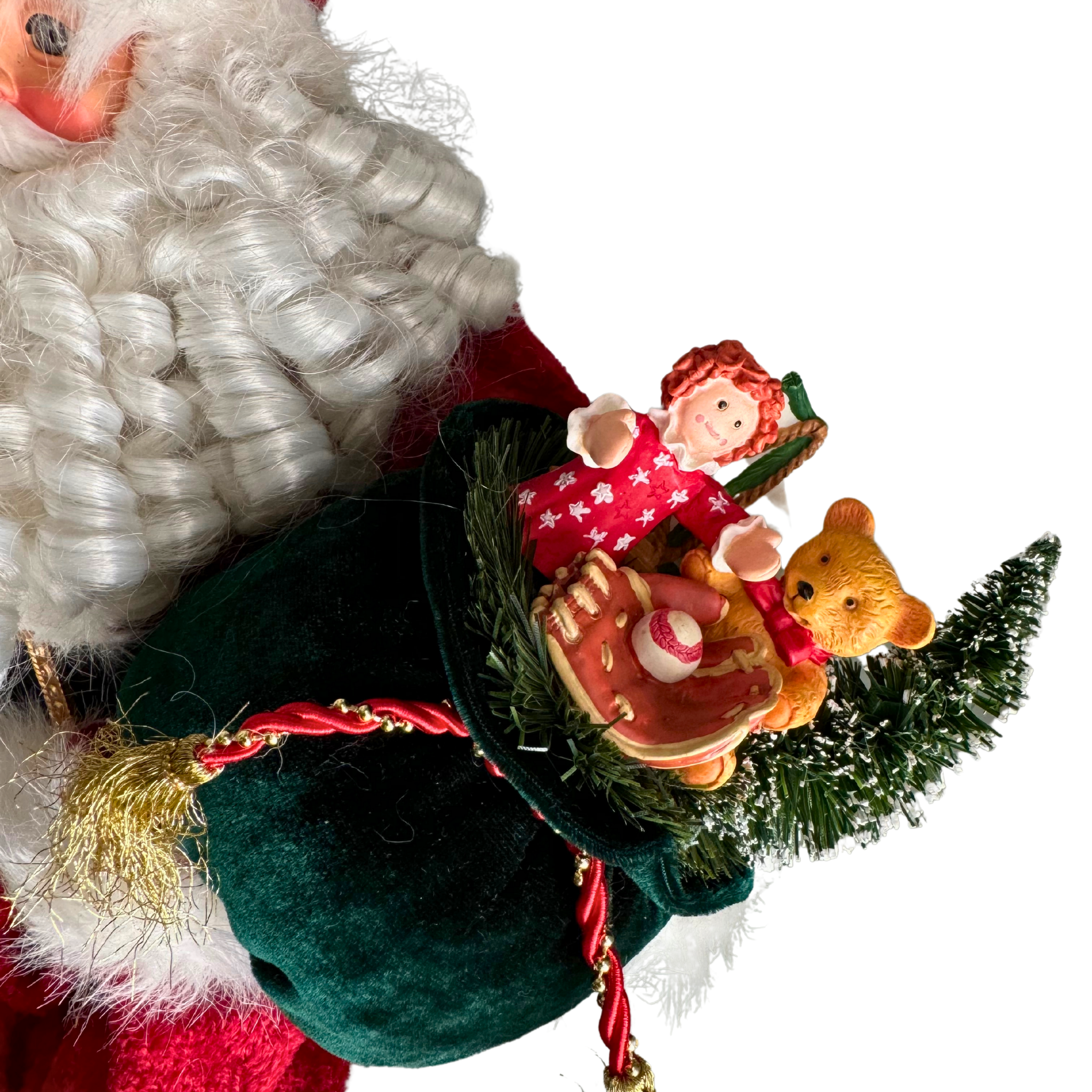 Add this beautifully seated Santa Claus figure to your collection or holiday decor. It showcases the season's charm, adorned with a picturesque and traditional sack full of toys and wonders for everyone. This figure brings to life the essence of the holidays, adding a touch of timeless elegance to your decor.