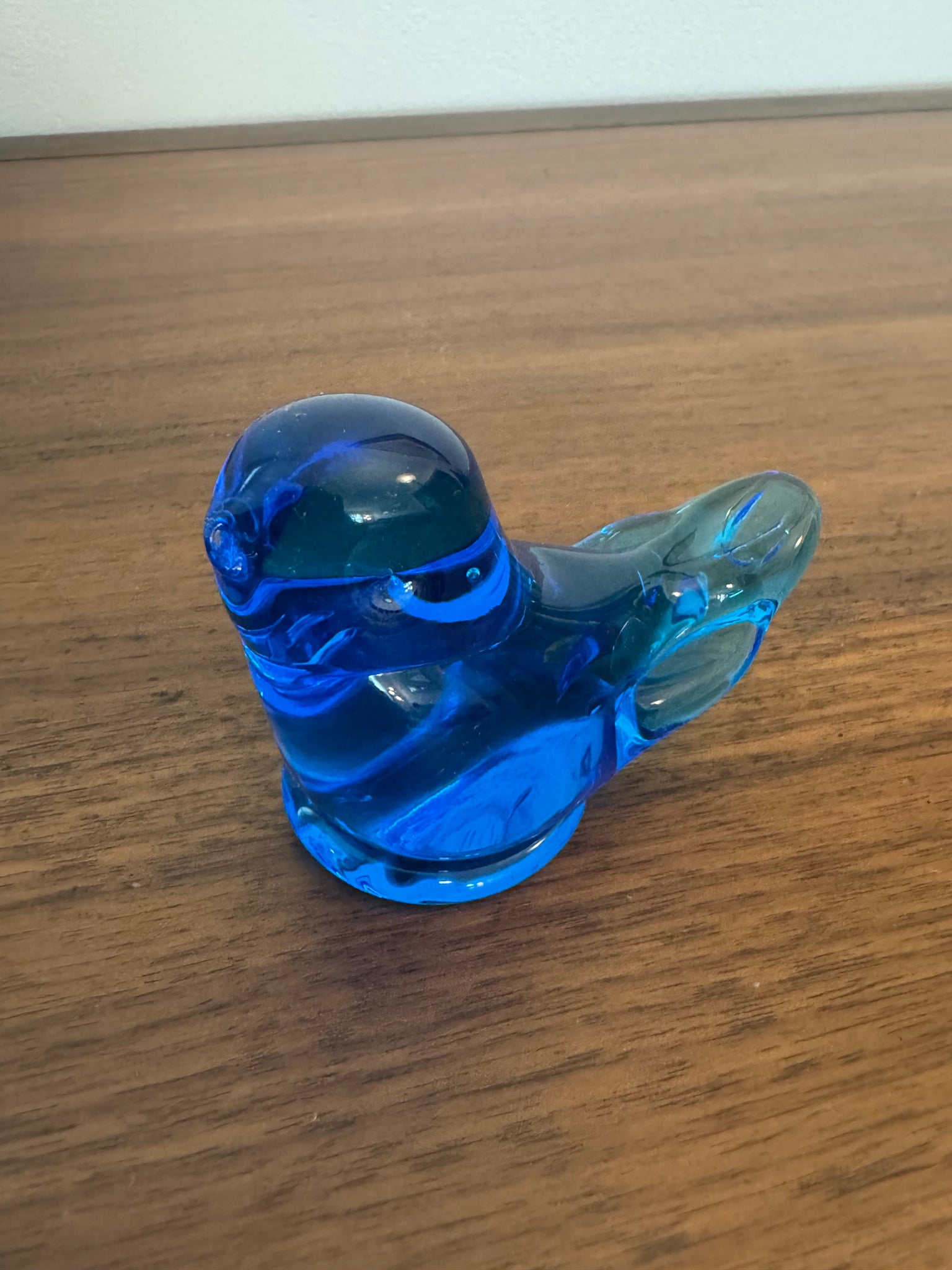 Discover the charm of this stunning vintage blue glass bird figurine, a perfect addition to your art collection.