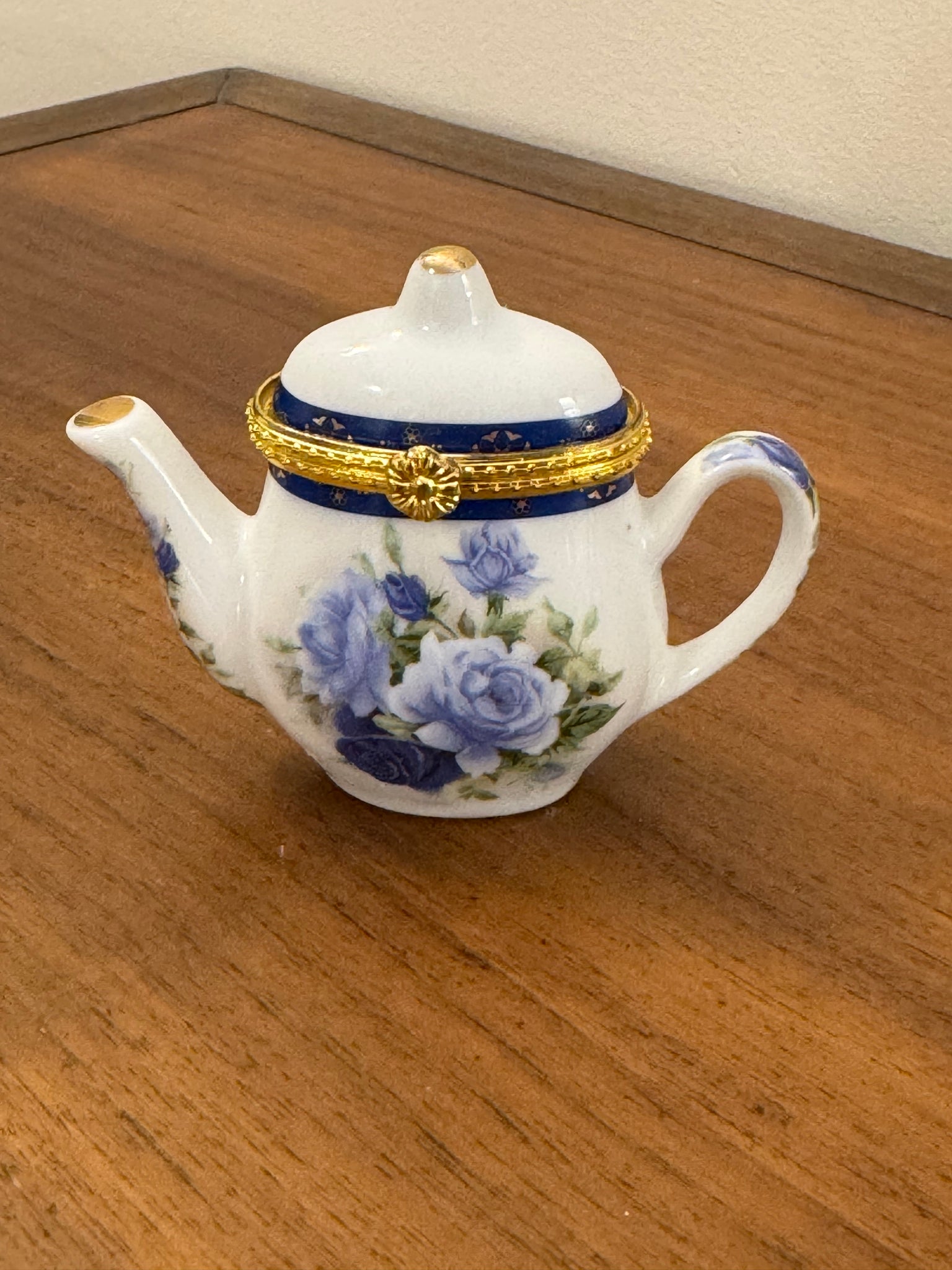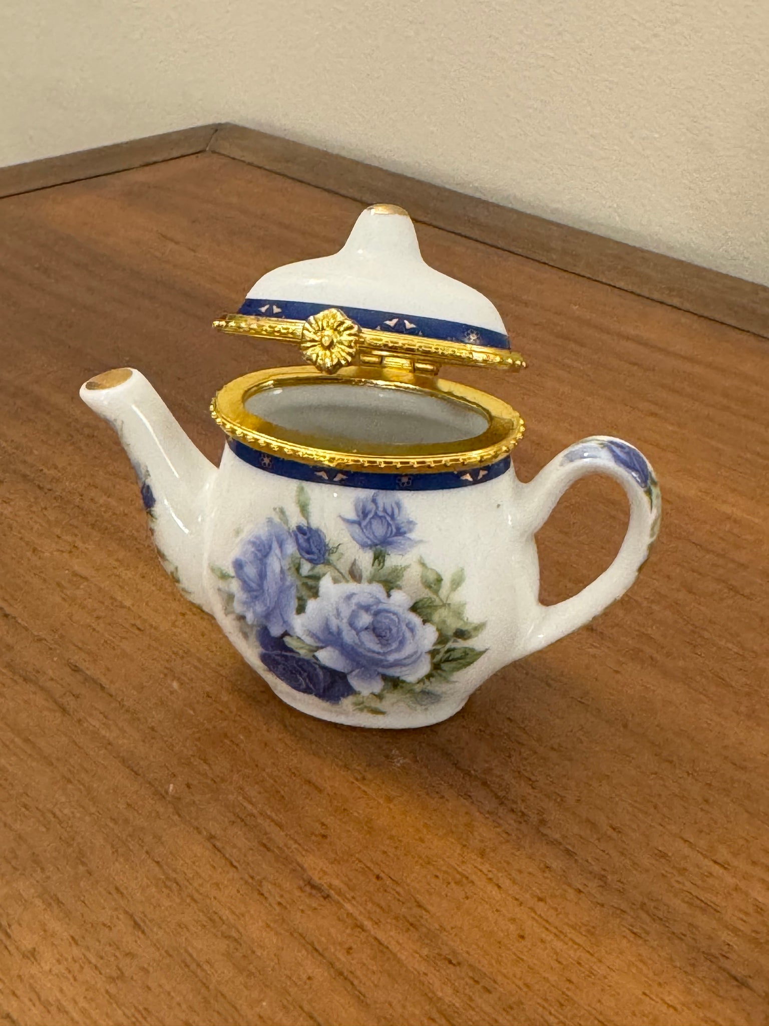 Charming Vintage Mini Teapot Trinket Box Made of Porcelain