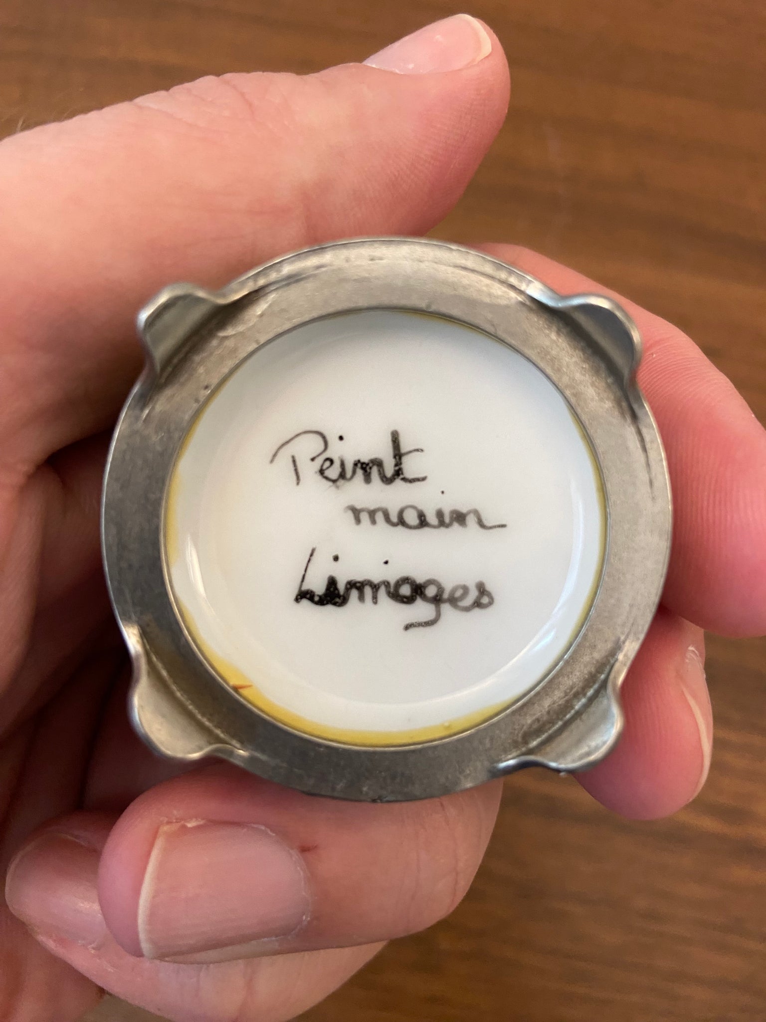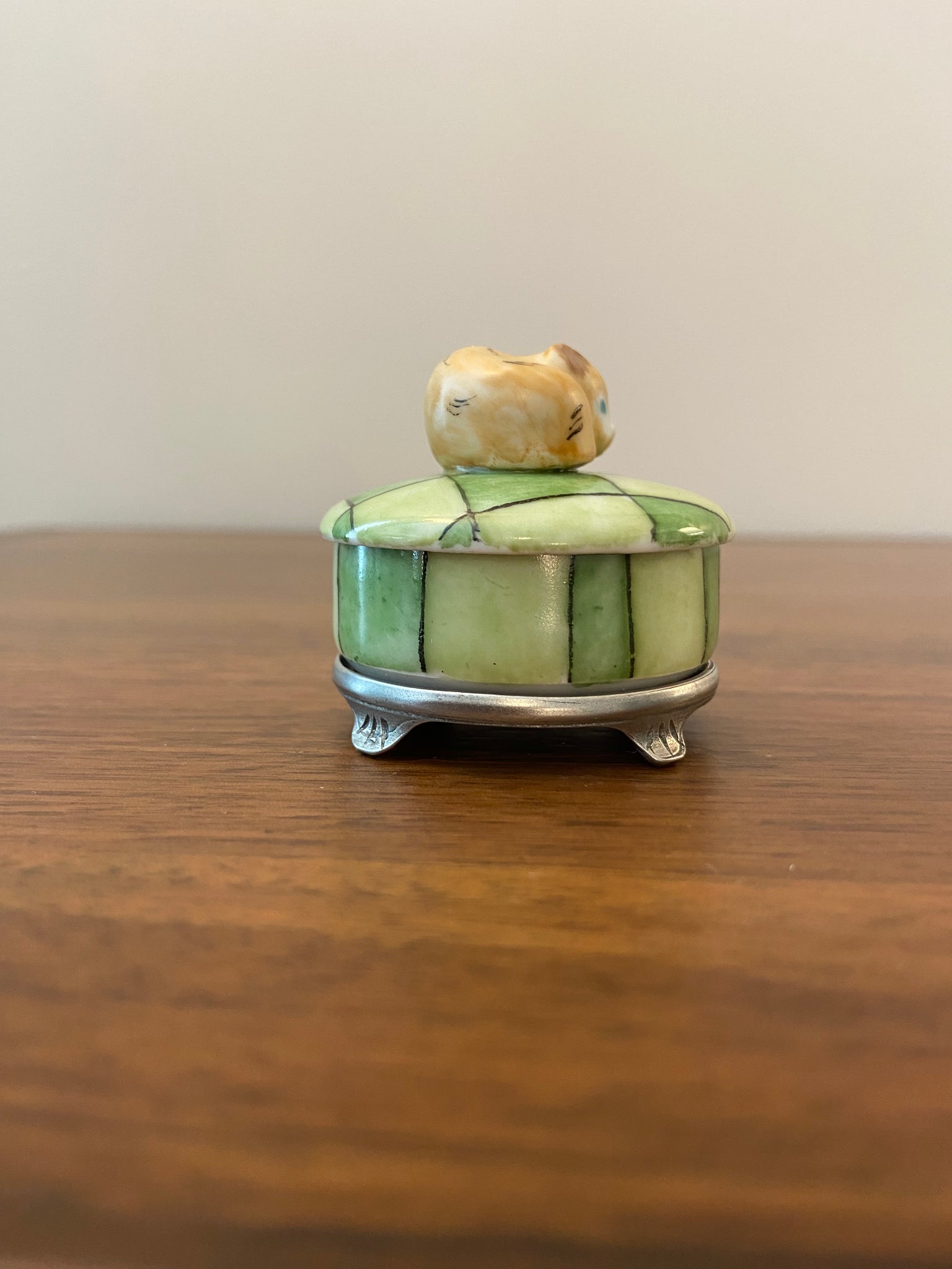Charming Vintage Limoges Porcelain Trinket Box adorned with an adorable Kitty design.
