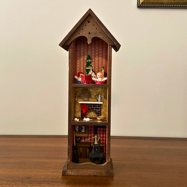 Vintage Christmas Diorama Wooden Miniatures Shelf Doll-House Holiday Out of stock