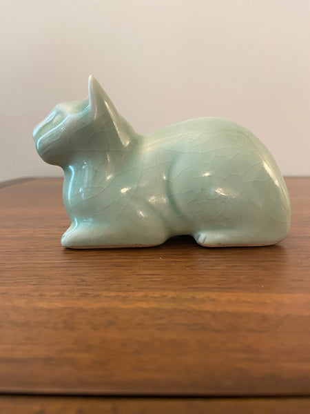 Vintage Celadon Crazed Glaze Ceramic Cat Figurine Out of stock