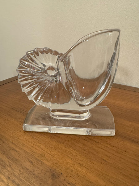 Clear Glass Seashell Shaped Nautilus Vase Bookend Out of stock