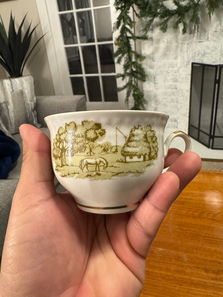 Ceramic Blue Transfer Butter Dish Currier and Ives Horse Ride at the Shore Out of stock
