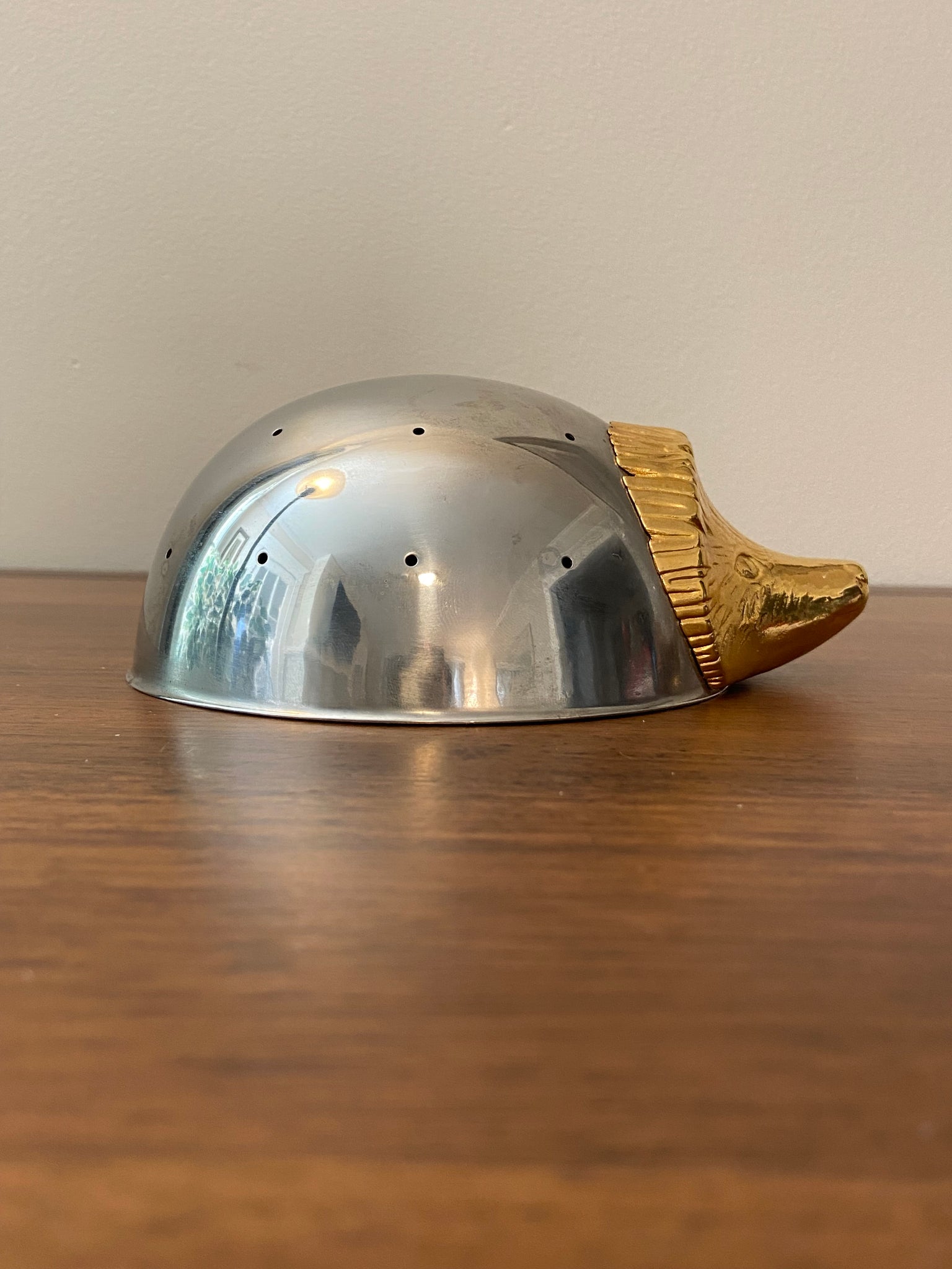 This cutest metal hedgehog snack holder may be from the 1970s. A beautifully decorated 24-karat gold-plated toothpick display holder is perfect for cheese, olives, or fruit appetizers, making it an excellent addition to your party and entertaining table decor.
