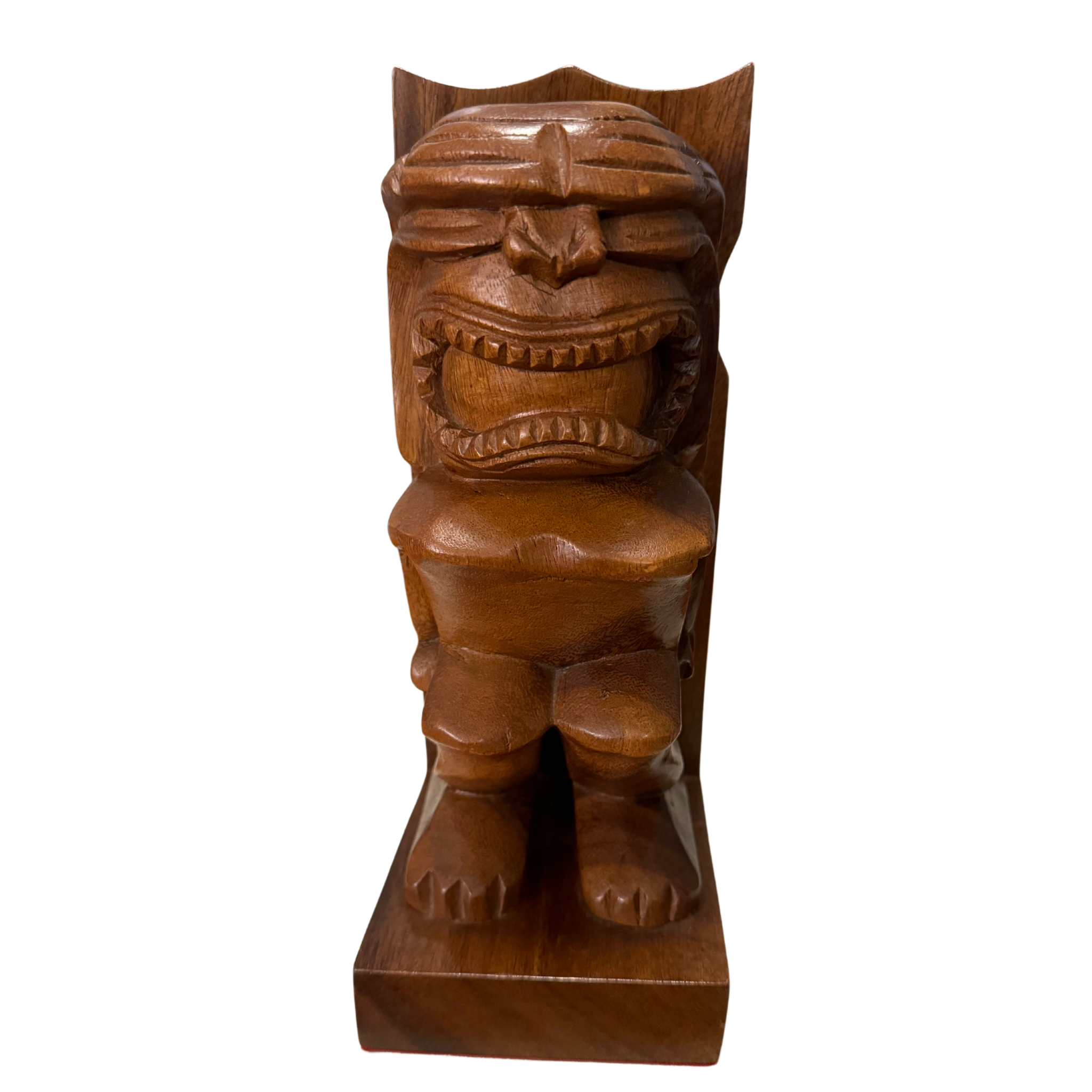 Hand-carved Vintage Wood Tiki Figure Bookends