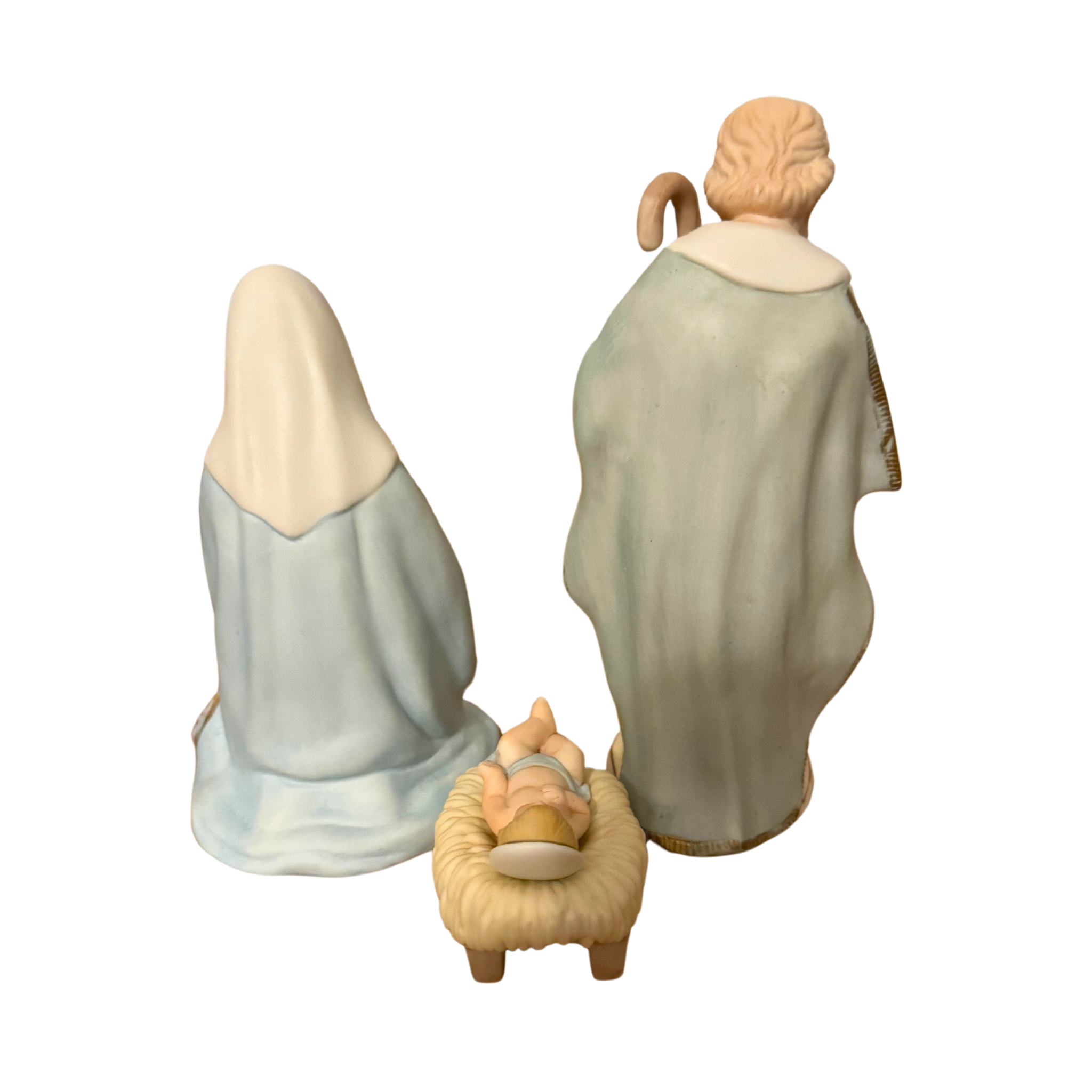 Measurements: Joseph 6.25 in H, Virgen Mary 5 in H, and baby Jesus 1.5 in approximately
