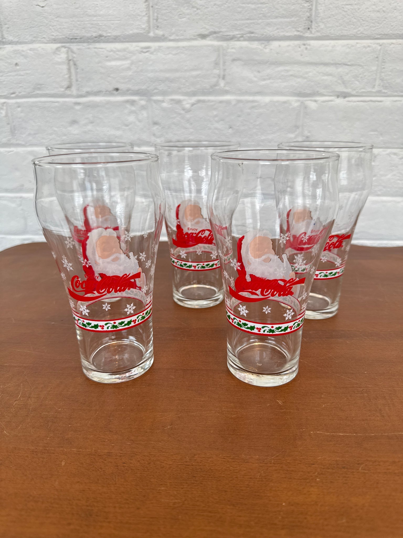This delightful set of five vintage Coca-Cola glasses, beautifully adorned with a festive Santa Claus design, is perfect for Christmas!