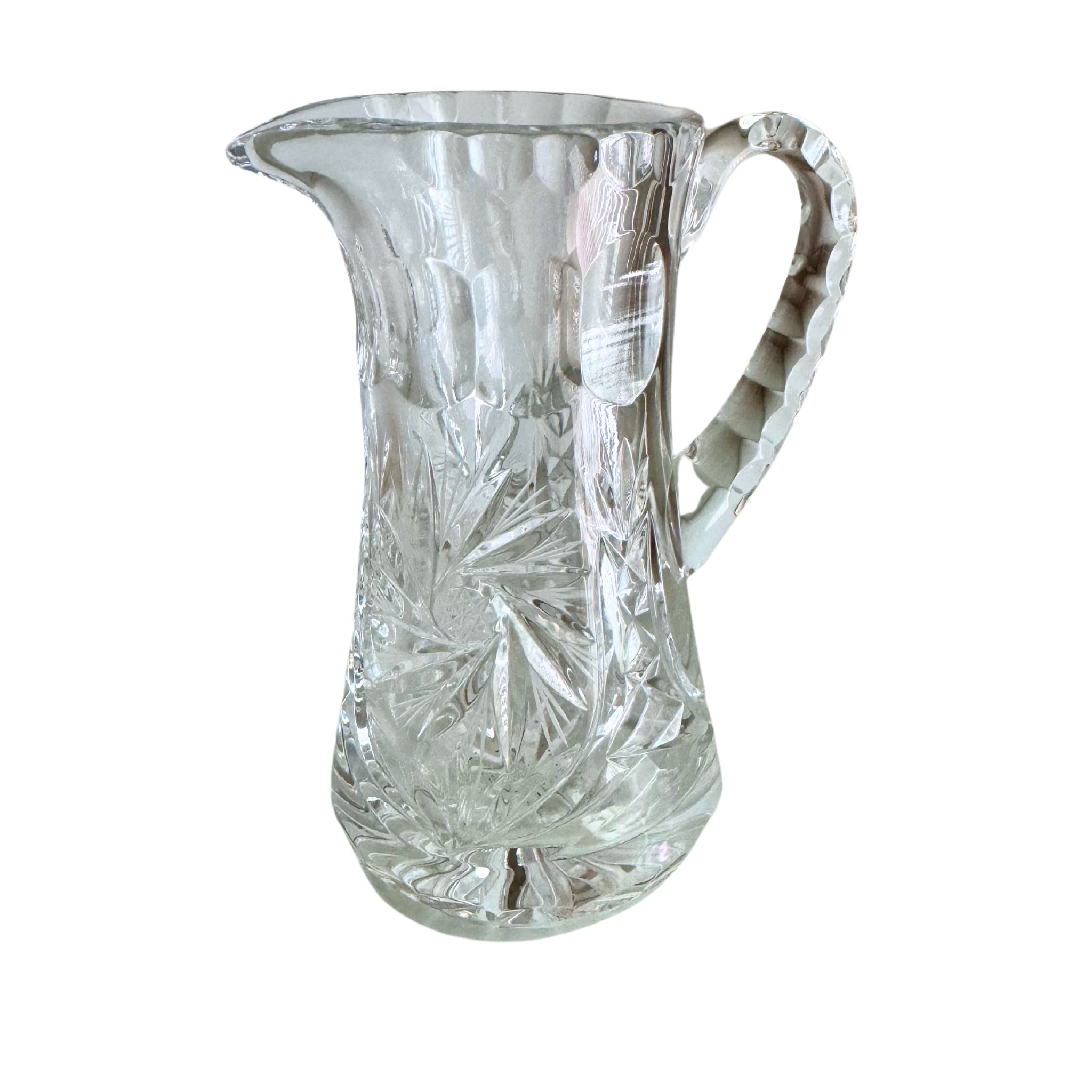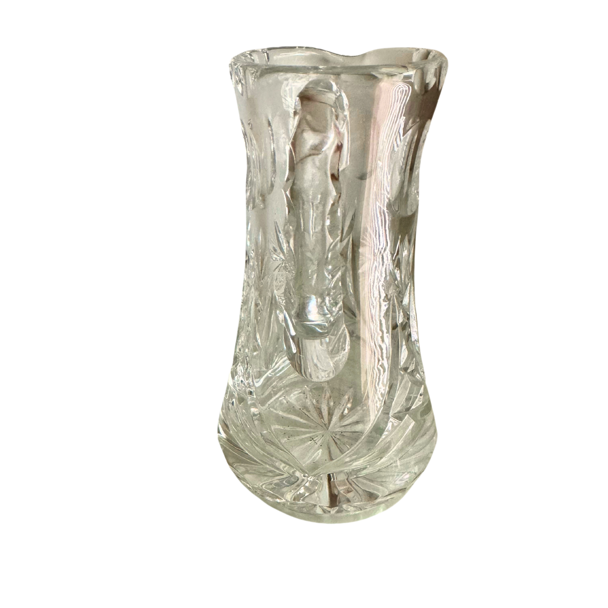 Vintage Crystal Glass small Pitcher-Creamer. The weight indicates lead crystal, with rounded cuts and some microbubbles in the glass, but it's in good condition. Please refer to the images for more details. There is no signature on it.