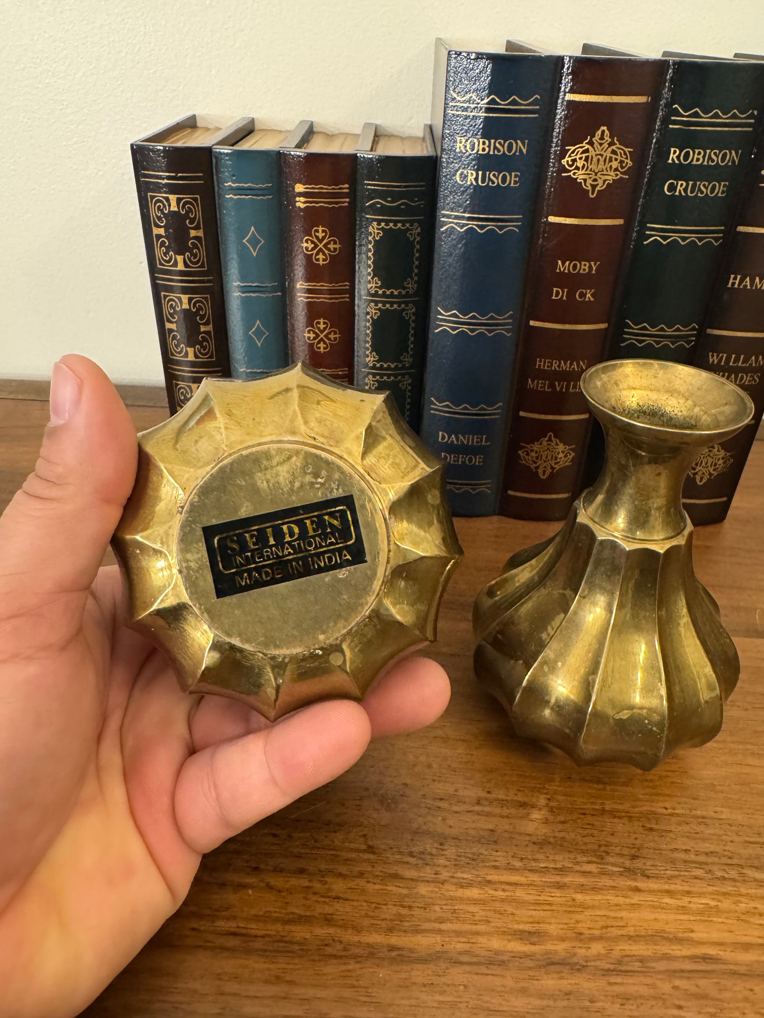 Discover the charm of this set of 2 vintage Seiden International brass small vases. Perfect for adding a touch of elegance to any space!