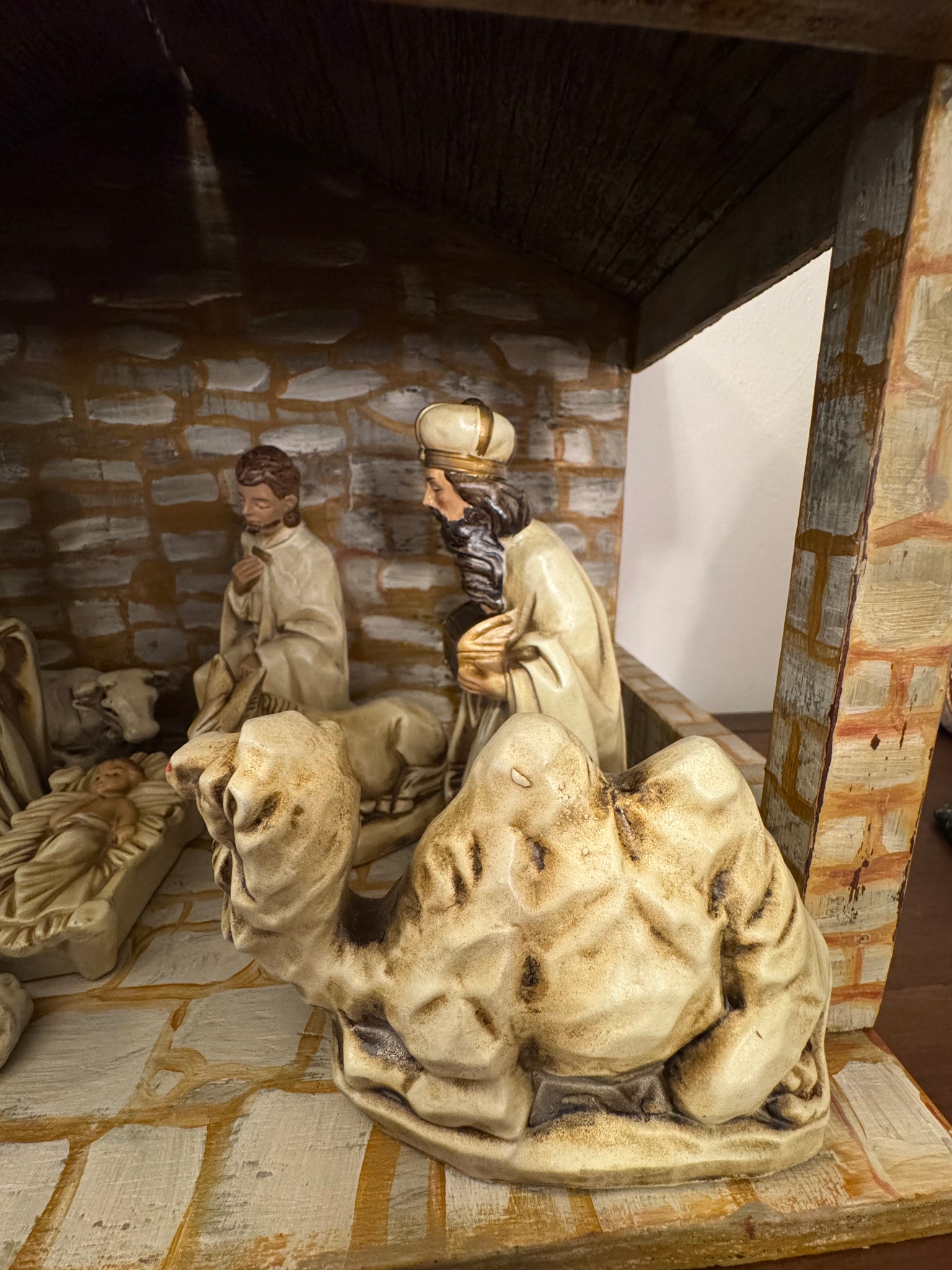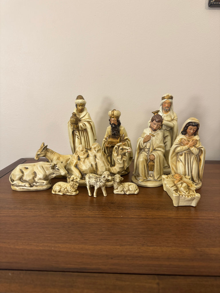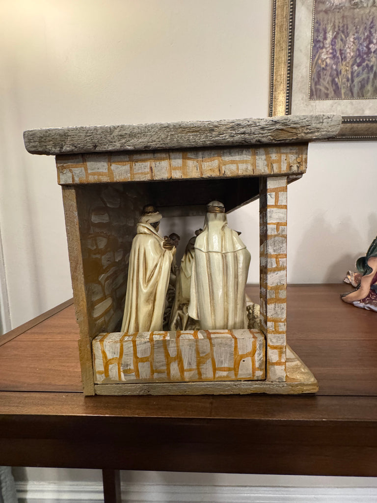 Vintage Nativity Set Japan Papier Mache with Handmade Manger