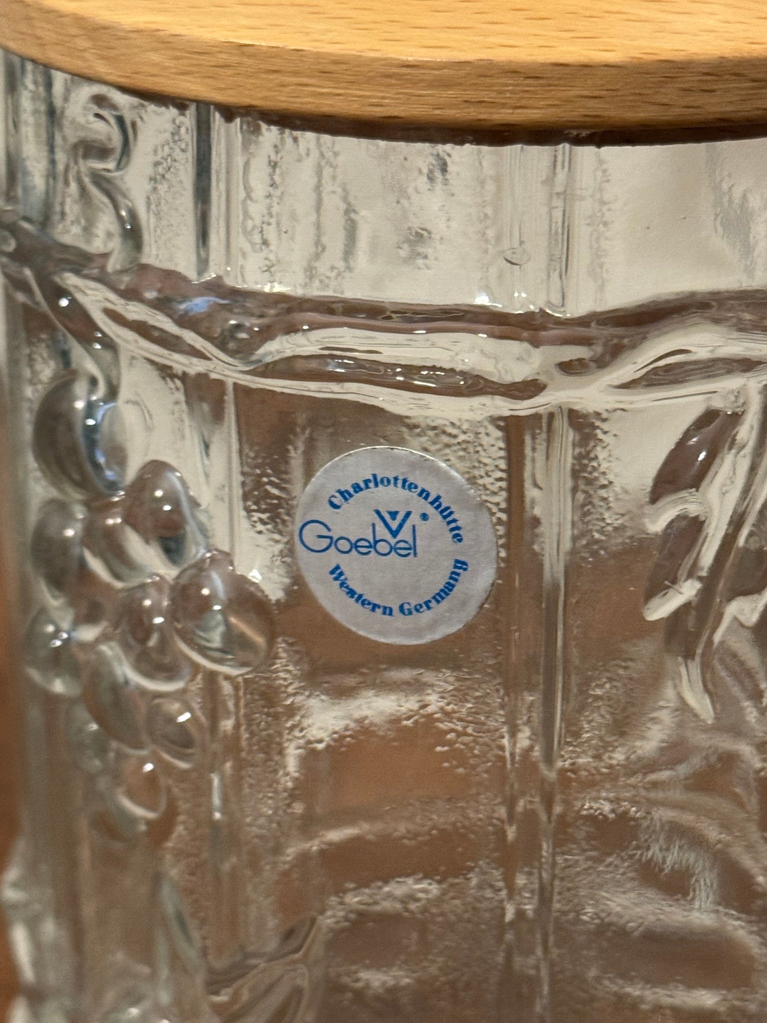 Vintage Goebel Charlottenhutte Glass Jar with Wooden Lid