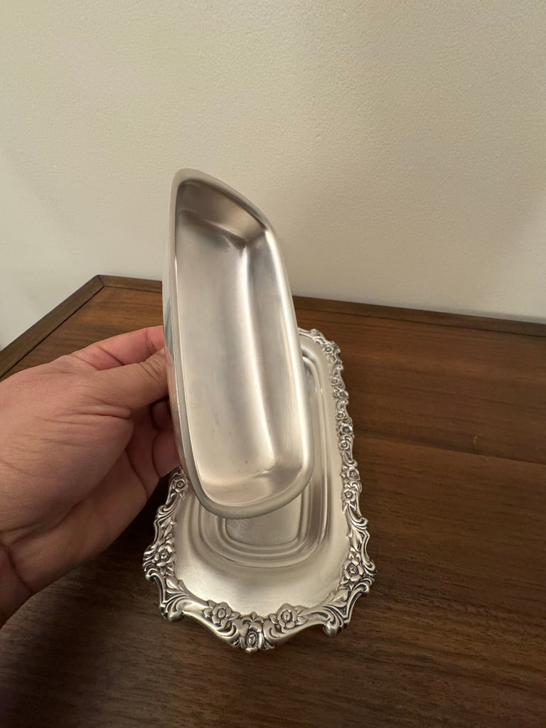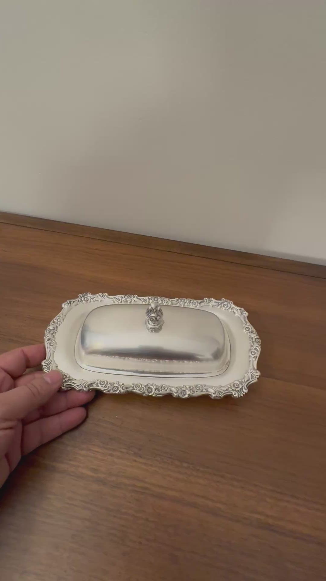Vintage Ornate Rectangular Silver-plated Lidded Butter Dish