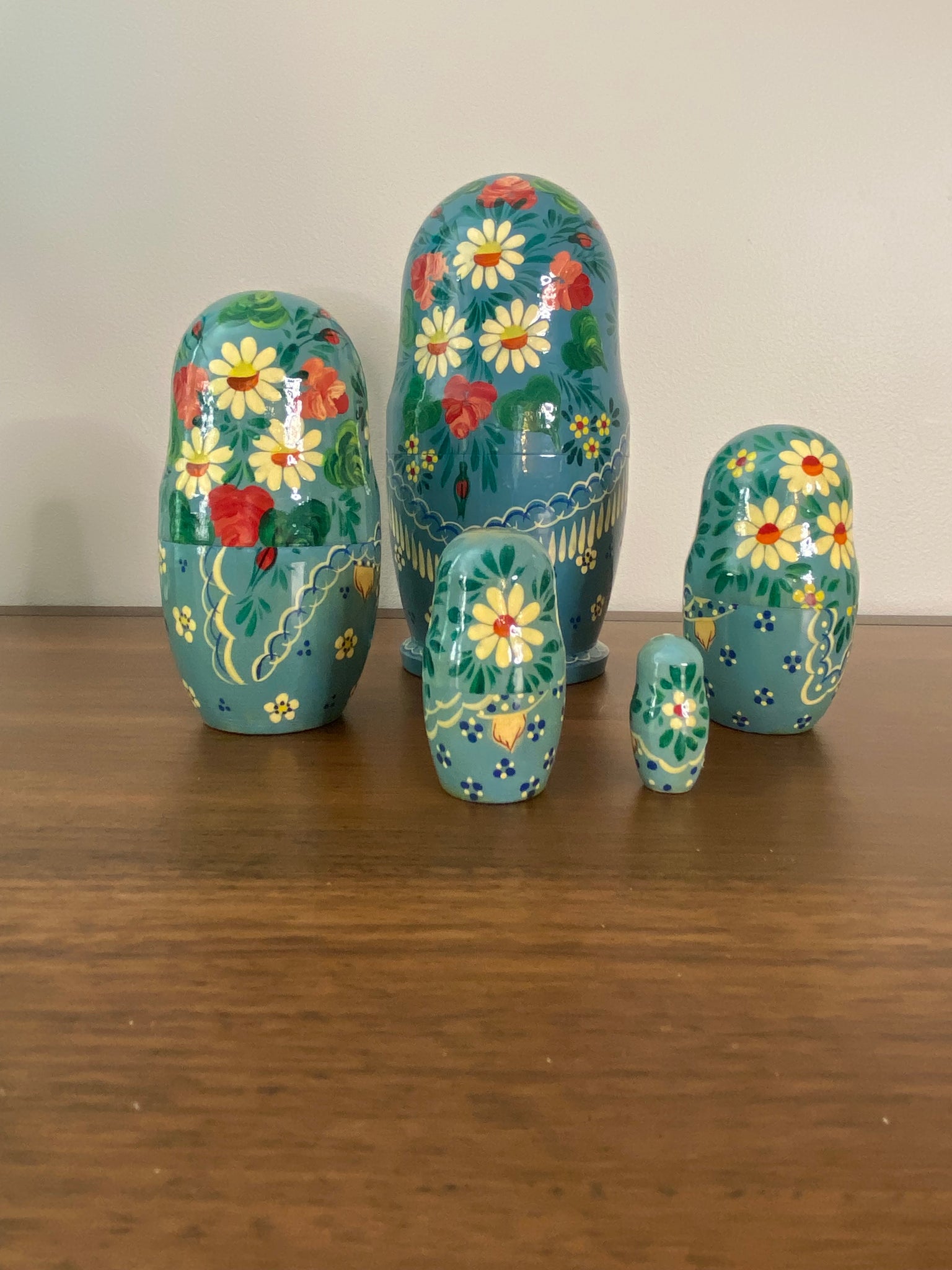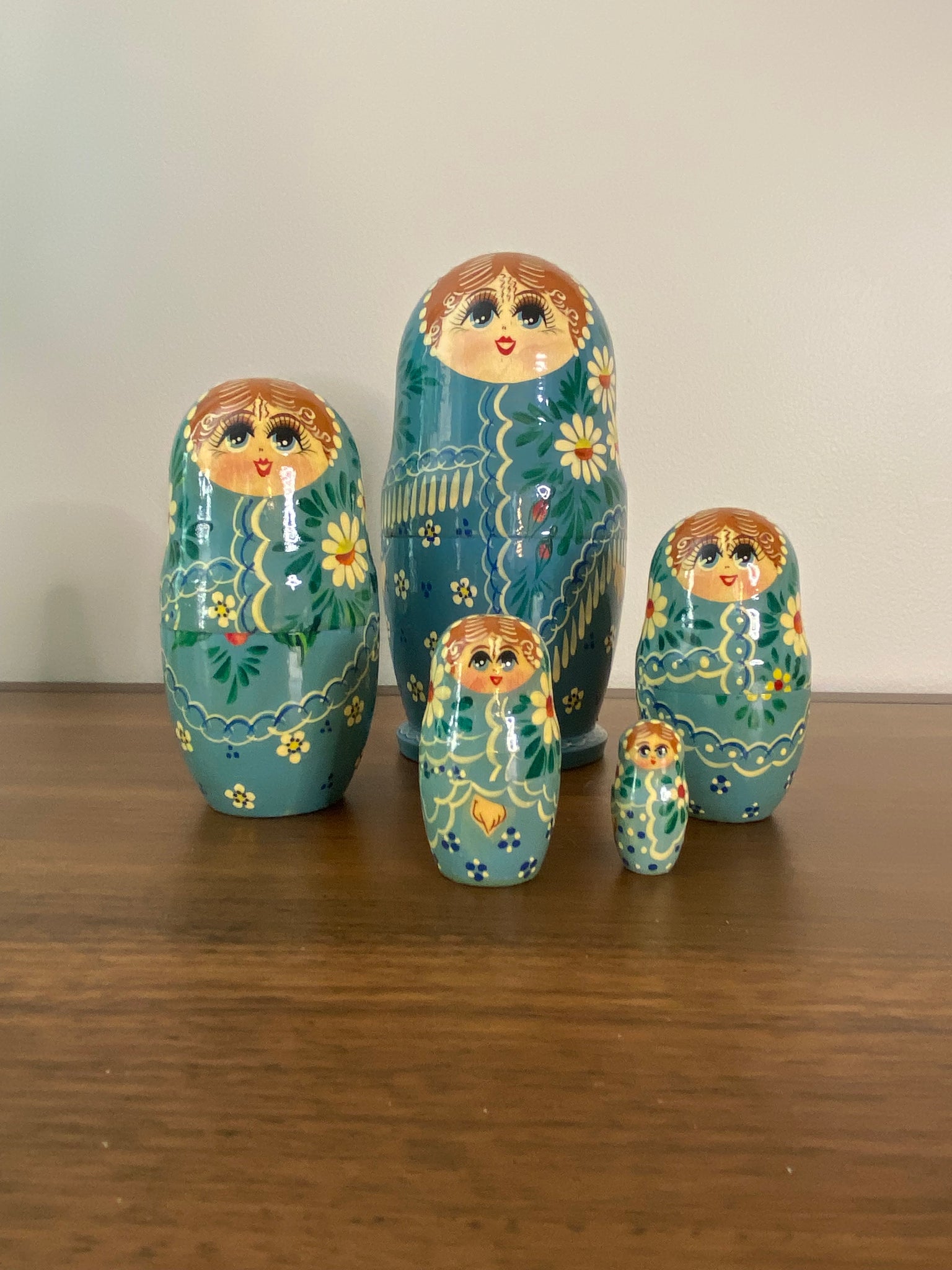 Experience the charm of this handcrafted and beautifully painted Matryoshka nesting doll set, featuring a delightful five-piece set. Perfect for collectors and as unique gifts!
