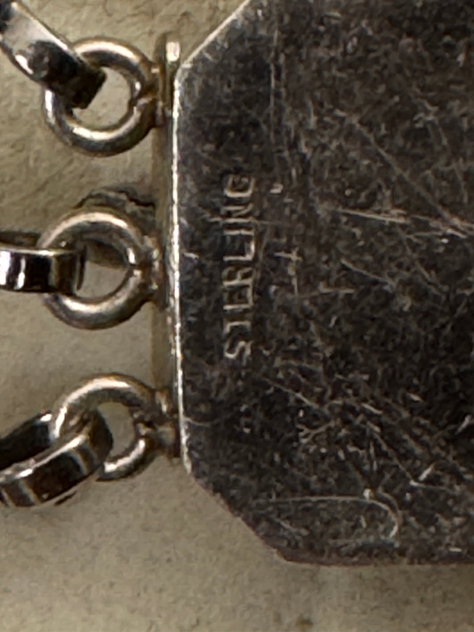 Materials: Crystal, golden metal bead (unknown), sterling (clasp)