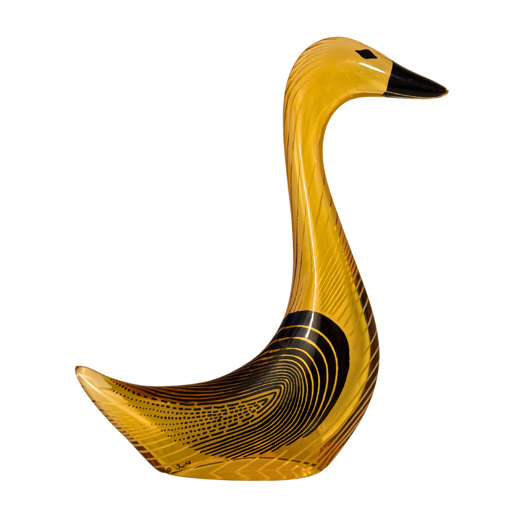 Discover the exquisite Goose MCM art by renowned artist Abraham Palatnik. Elegantly crafted in vibrant, translucent Lucite, it adds a touch of sophistication to any space. The goose is signed inside Pal.