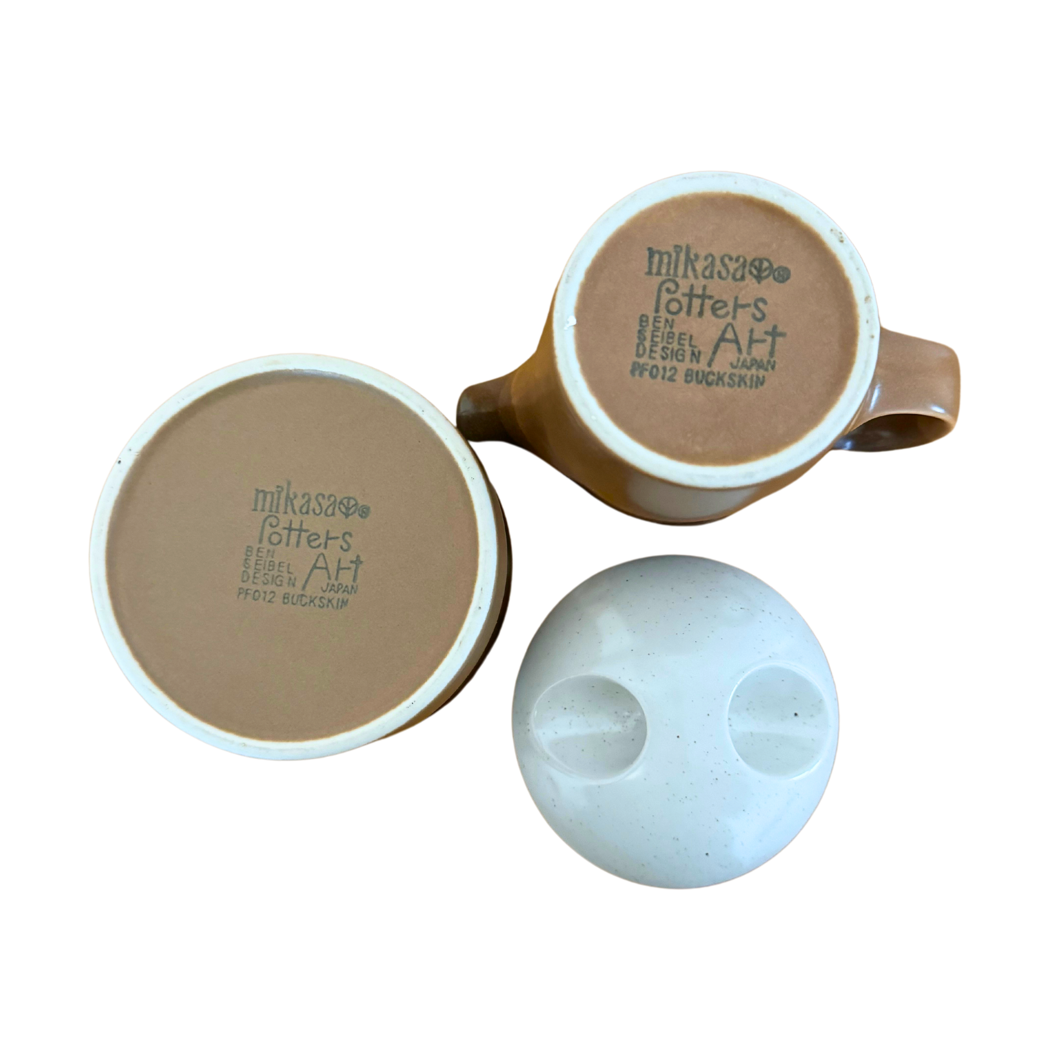 This Mikasa set, designed by Ben Seibel, is made in Japan. This Potters Art Stoneware Creamer Sugar bowl is a beautiful and functional set representing the MCM era and its outstandingsigns.