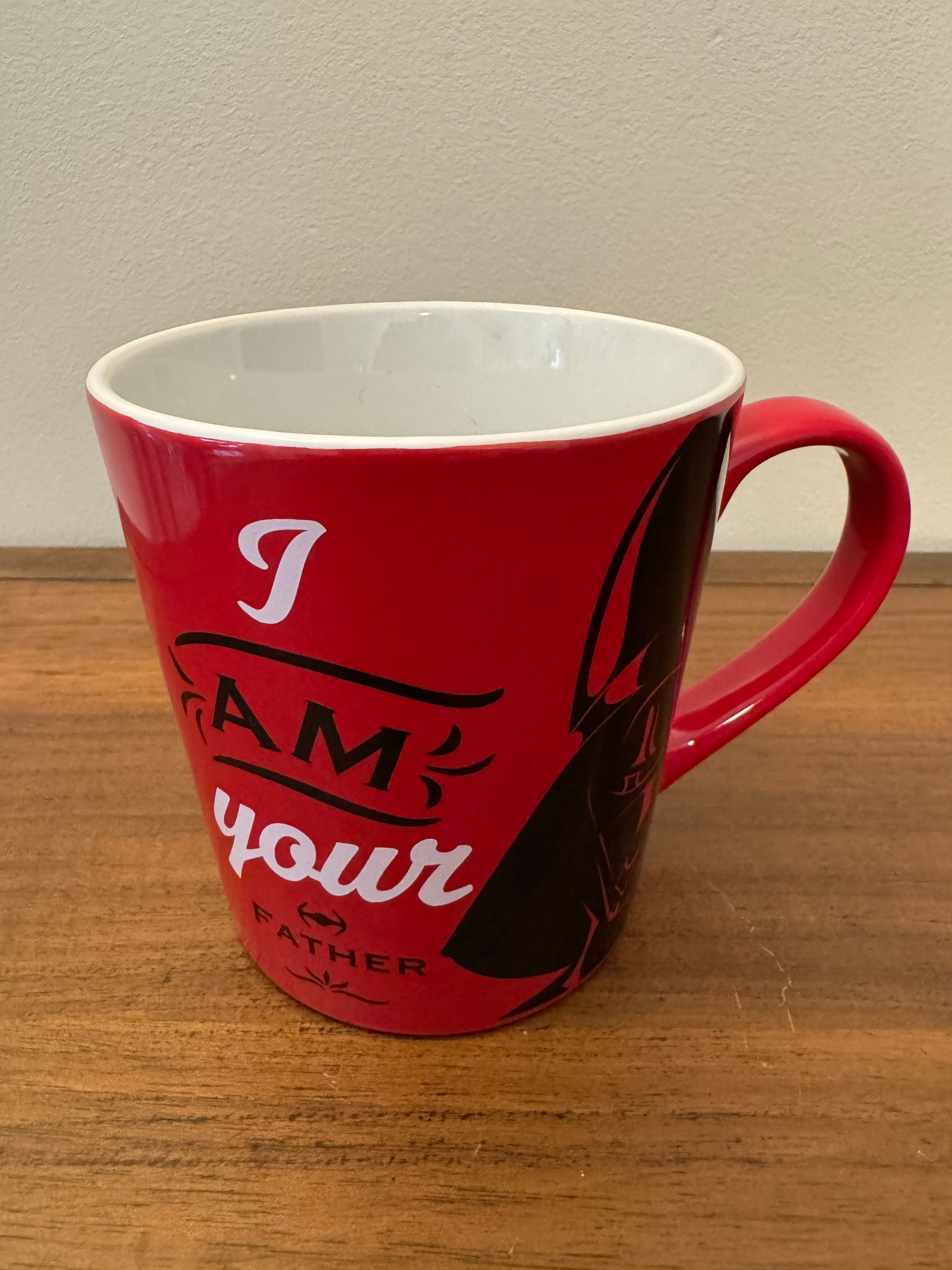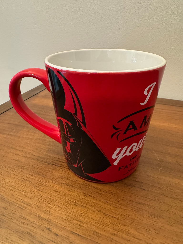 Discover this rare Darth Vader coffee mug, featuring the iconic phrase "I Am Your Father." It's a must-have for any Star Wars fan!