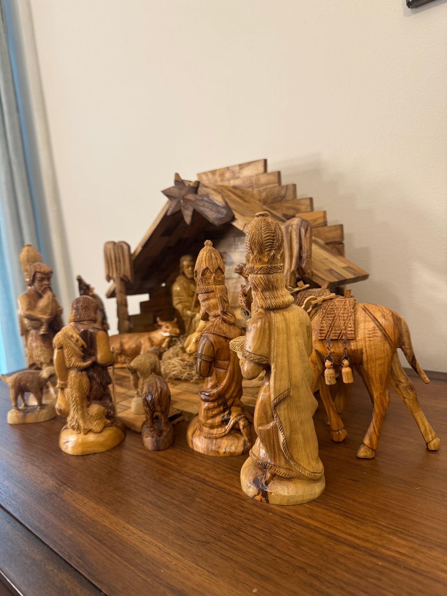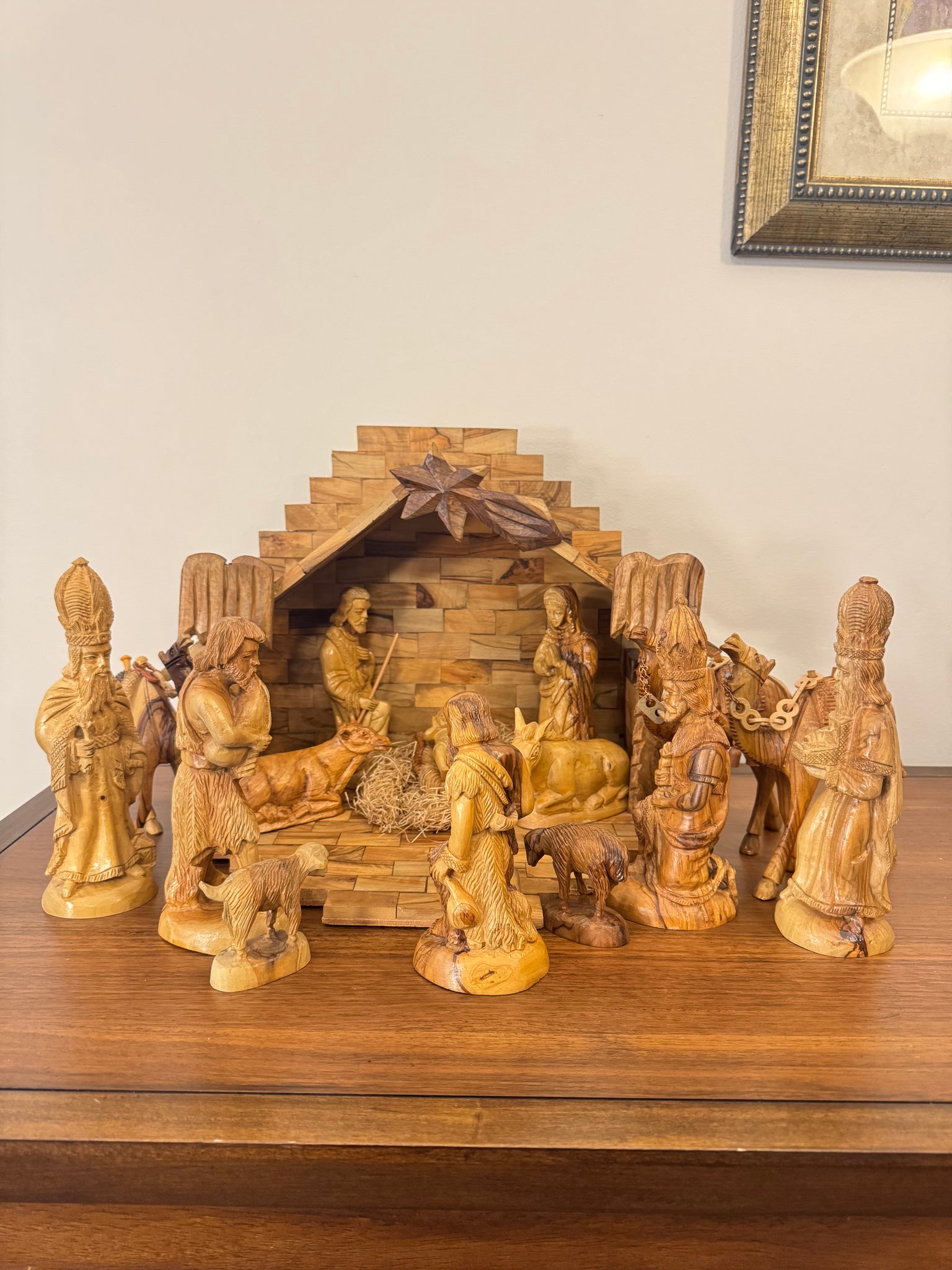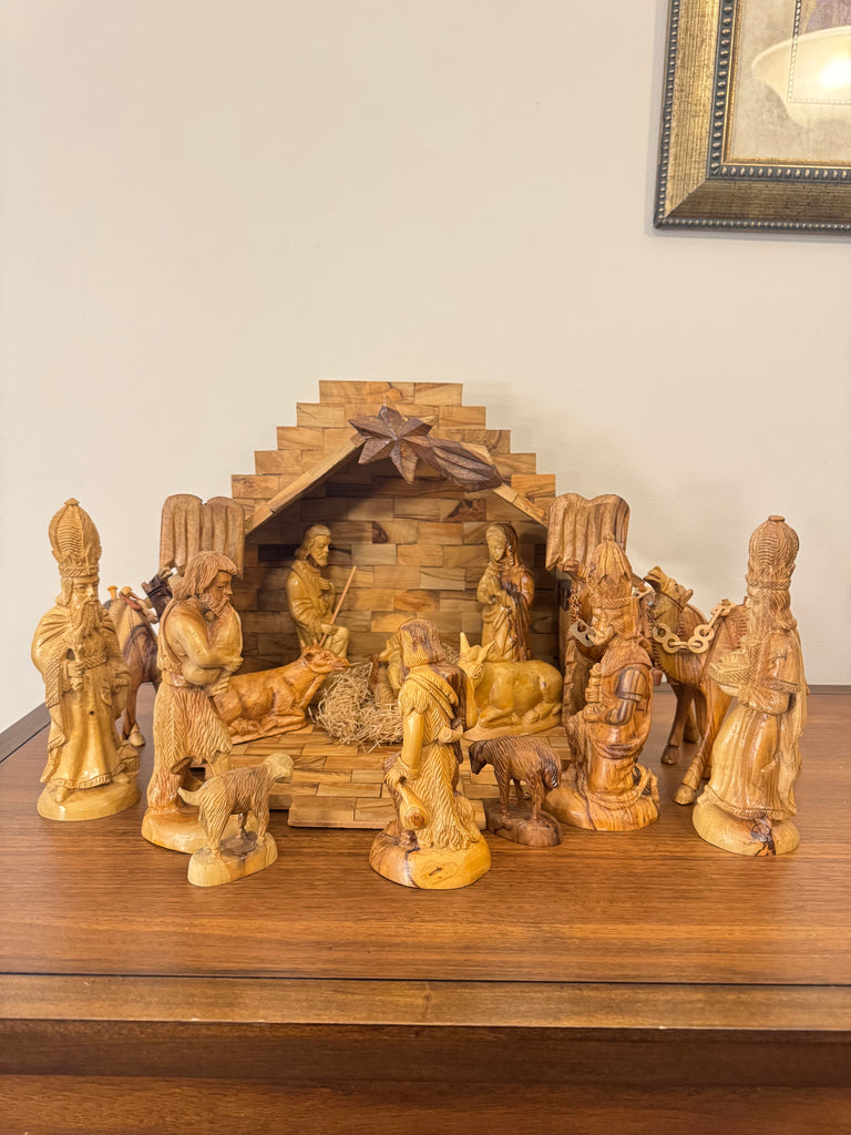 Olive Wood Hand-carved Nativity Set and Manger READ