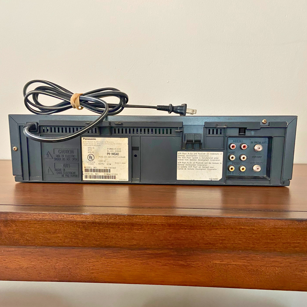 This 2000 Panasonic VHS VCR, model PV-V4540, features the serial number F0MA15330. This reliable video cassette recorder was expertly manufactured in Indonesia, ensuring quality and performance for your viewing pleasure.