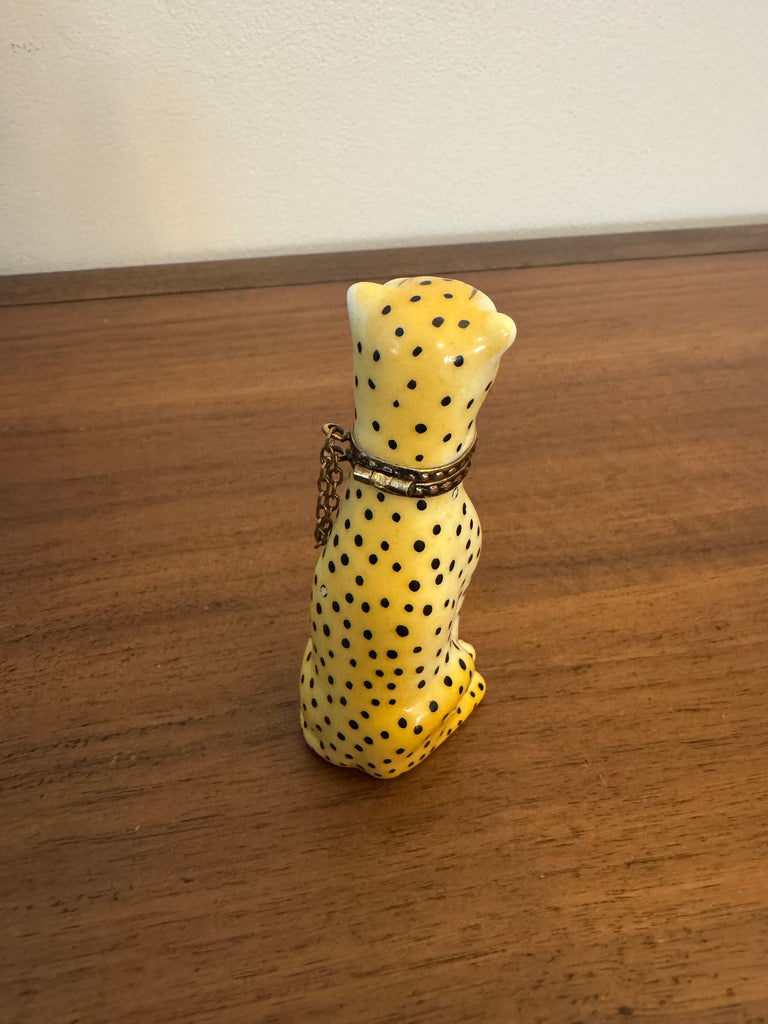 Porcelain Limoges France Cheetah Shaped Trinket Box