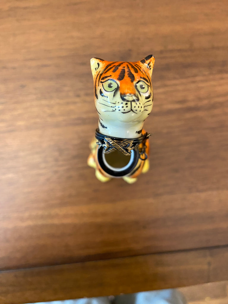 Vintage Rochard Limoges Porcelain Trinket Box Tiger