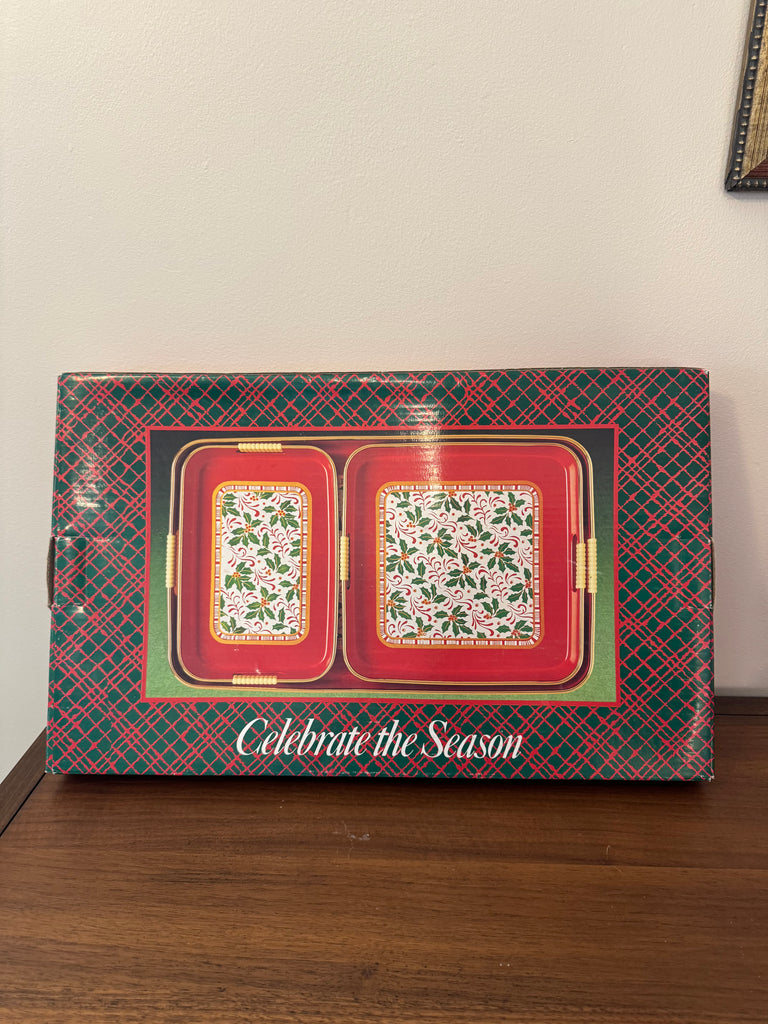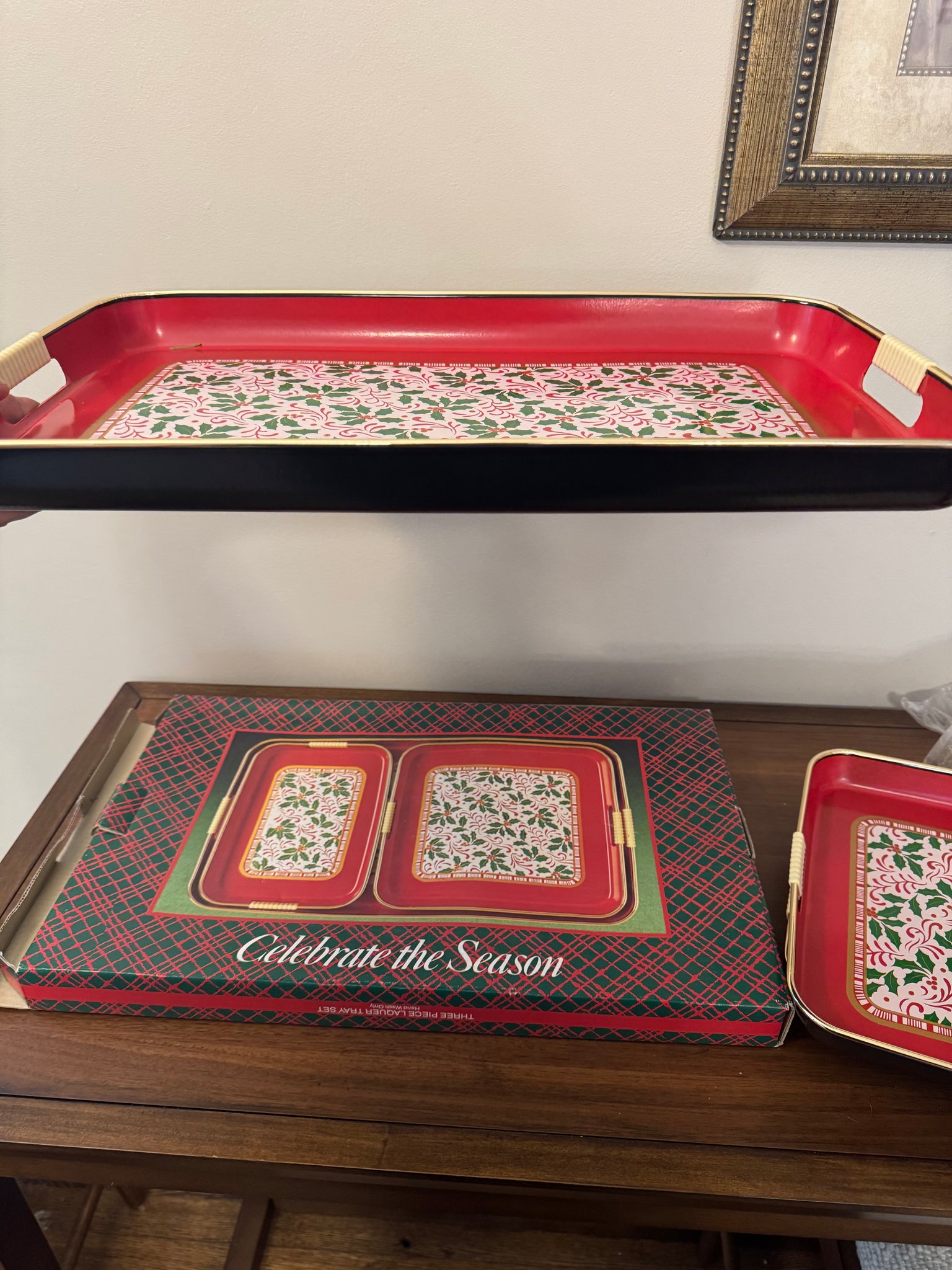 Vintage Laquer Christmas 3 Trays