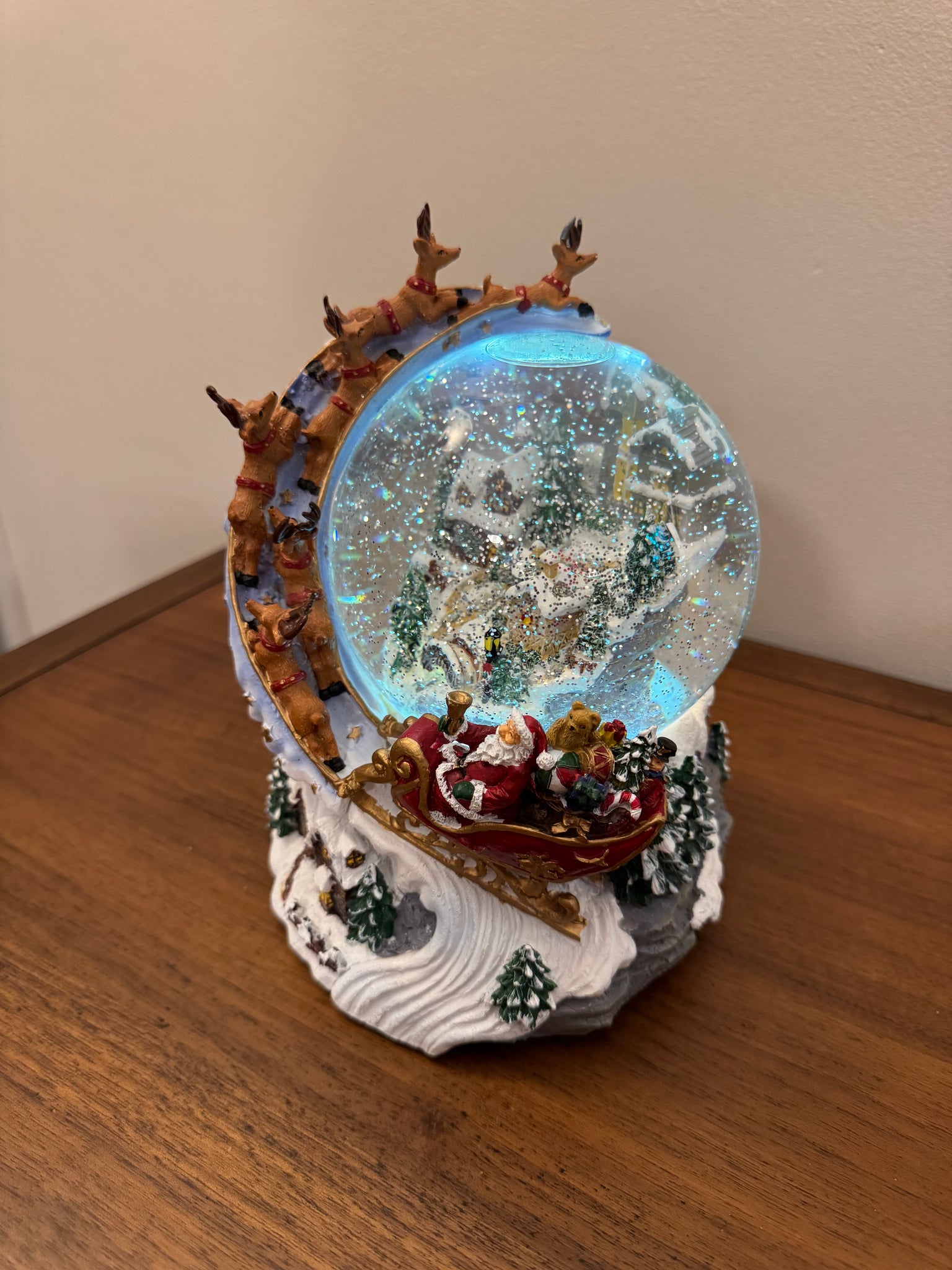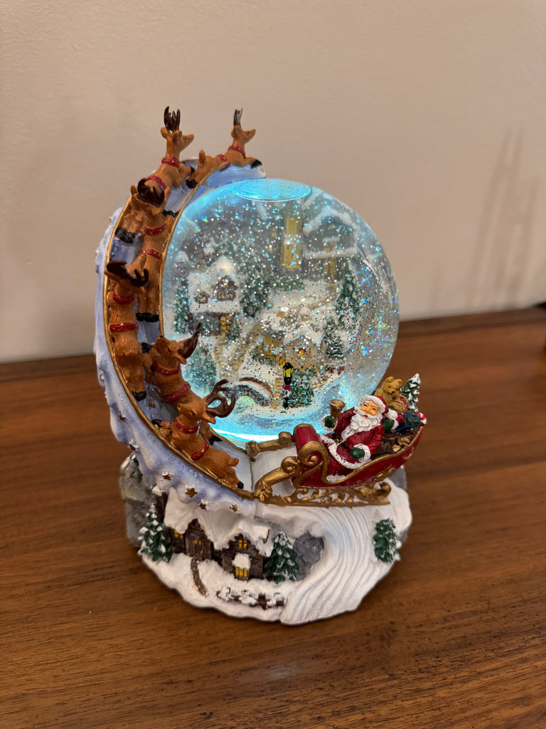 Snow Globe Santa and Sleigh Swirling LED Lighted Animated Glitter Christmas Decor