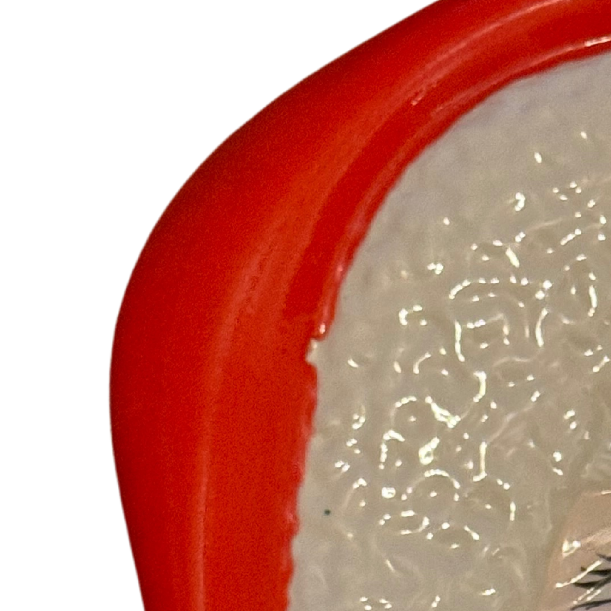 Enhance your holiday atmosphere with this stunning vintage Santa tray, handmade in a pottery studio. With its glossy red glaze and soft winter colors, the tray captures the charm of the festive season. It adds a timeless touch of elegance to your décor, bringing the essence of the holidays to life.