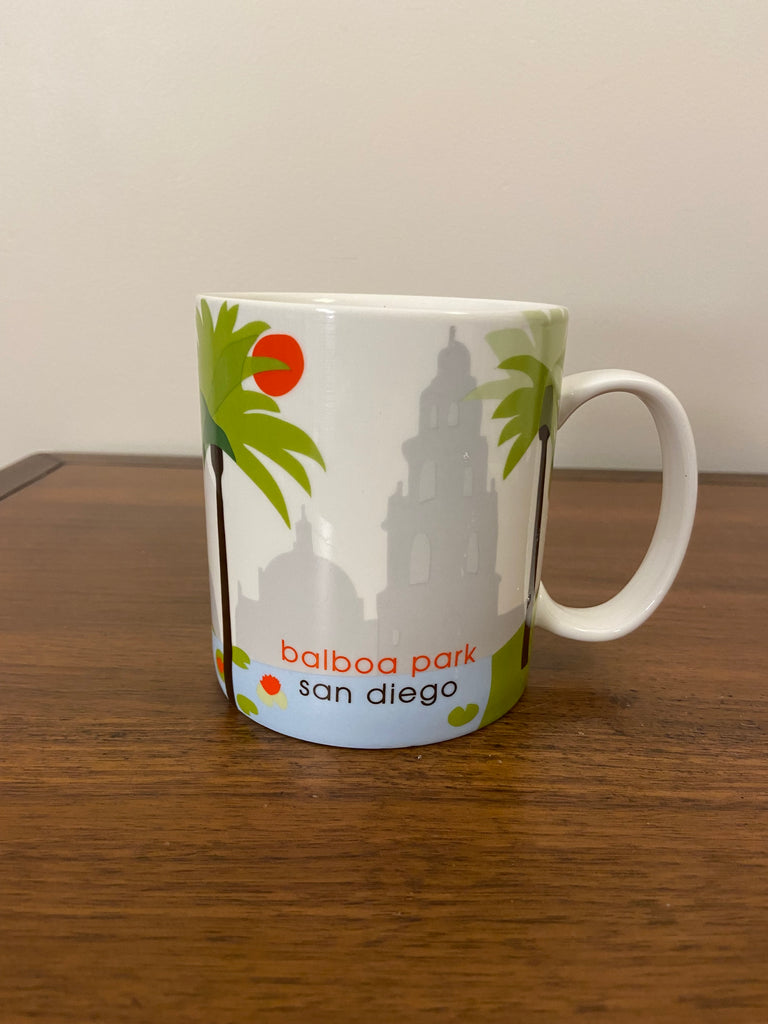 Discover this 18 oz Starbucks Coffee Porcelain Mug from 2007, featuring the iconic Balboa Park in San Diego—a perfect collector's item for coffee lovers!