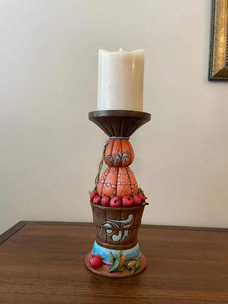 Enhance your autumn celebrations with the Jim Shore Harvest battery-operated Candlelight. The Harvest Candleholder is ideal for enchanting fall holiday decor.