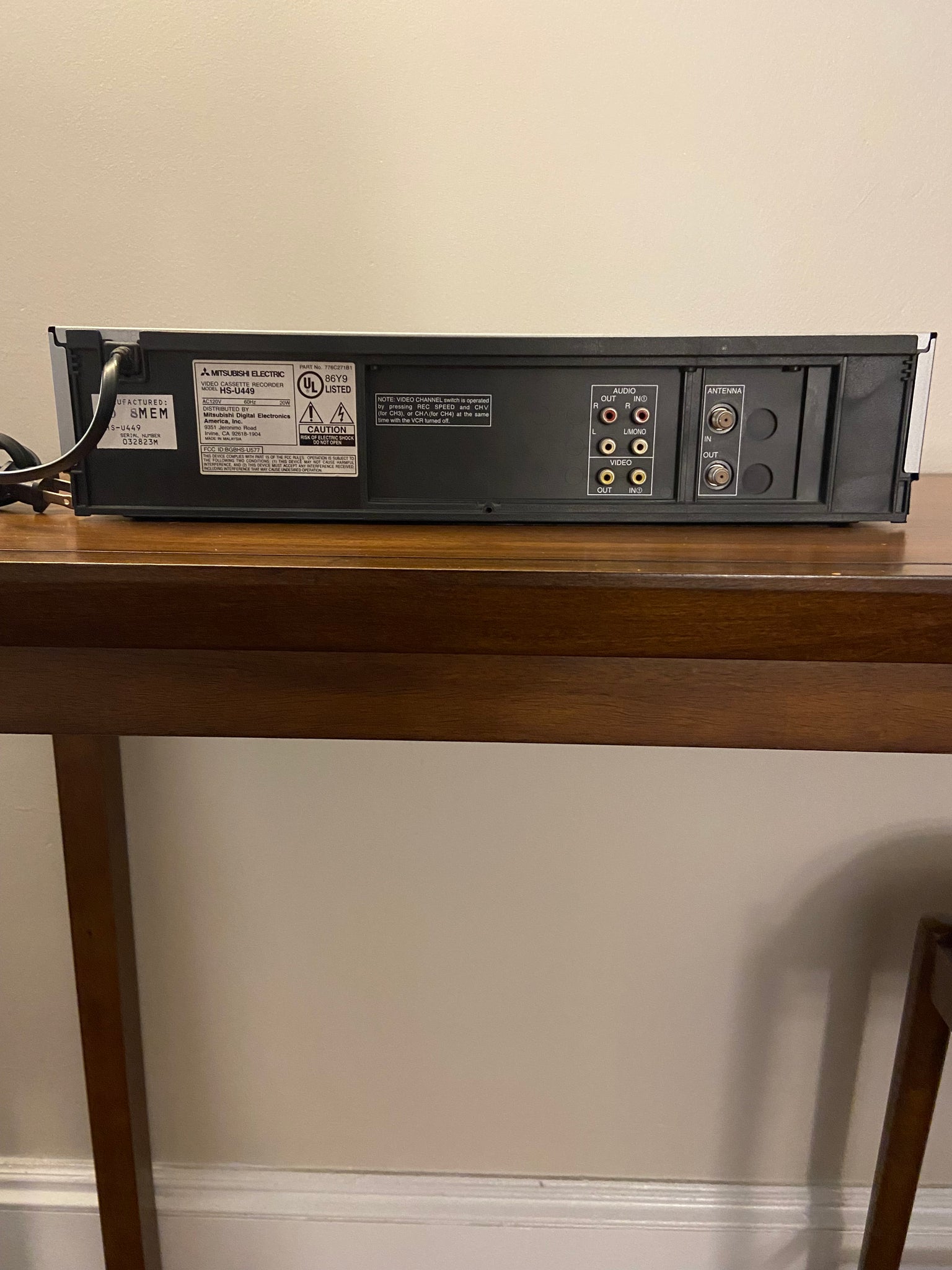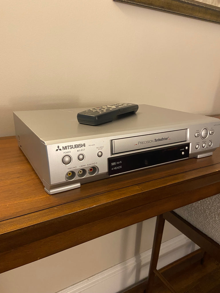This Mitsubishi HS-U449 Video Cassette Recorder features advanced VHS Hi-Fi technology and Precision TurboDrive. Experience exceptional video quality and reliable performance with this top-of-the-line VCR, perfect for enjoying your favorite movies and recordings. It has a remote control