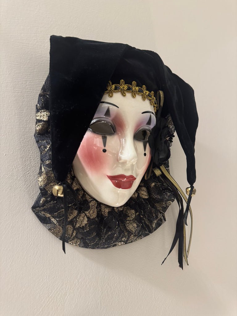 Vintage Ceramic Face Mask Arlequin Jester Wall Decor, expertly crafted in America with high-quality velvet, fabric, and design. Its aesthetics will undoubtedly add a touch of luxury and sophistication to your space.