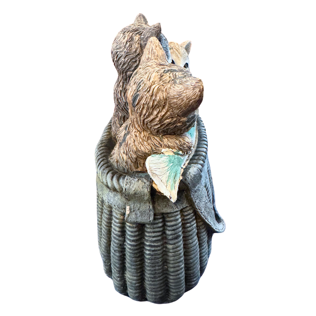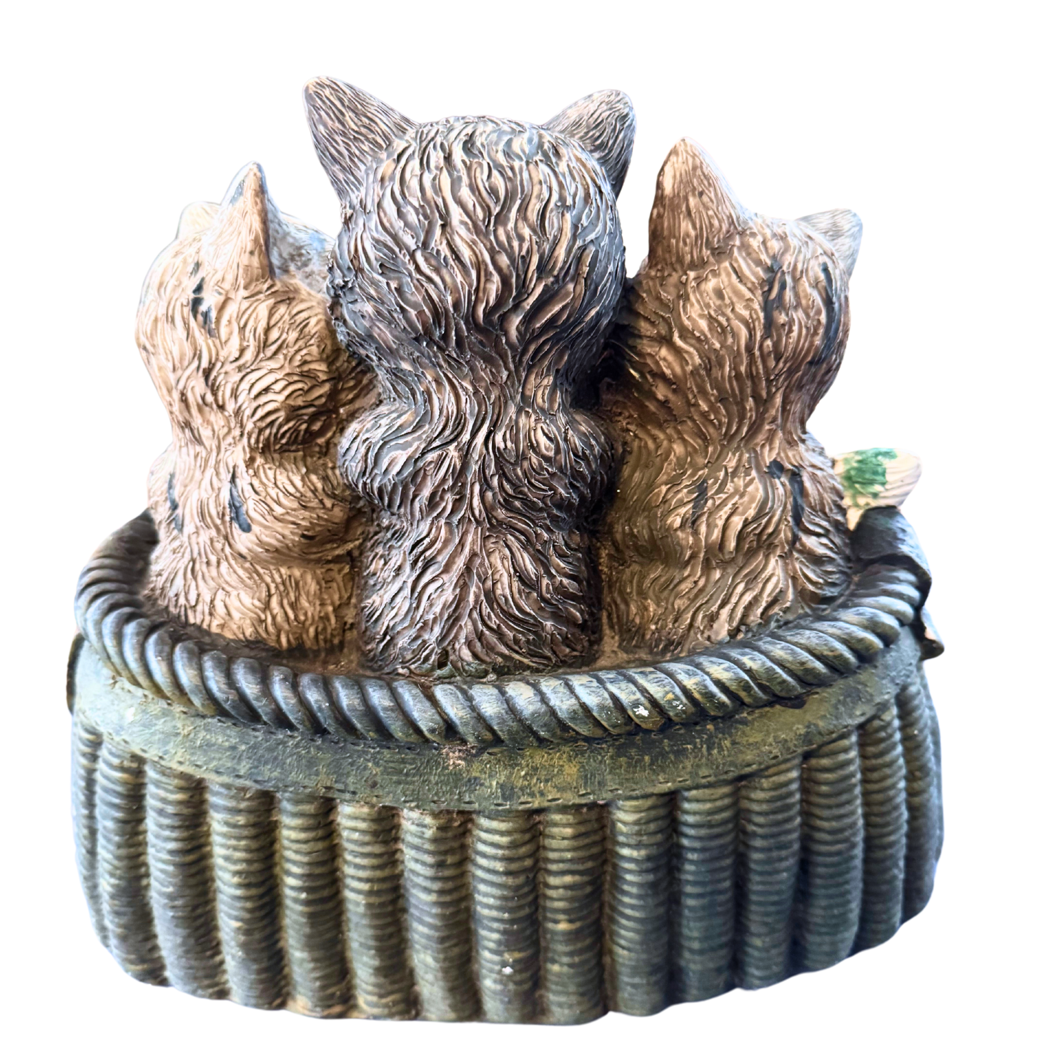 Three Cute Kittens Cats In A Fishing Basket Resin Figurine