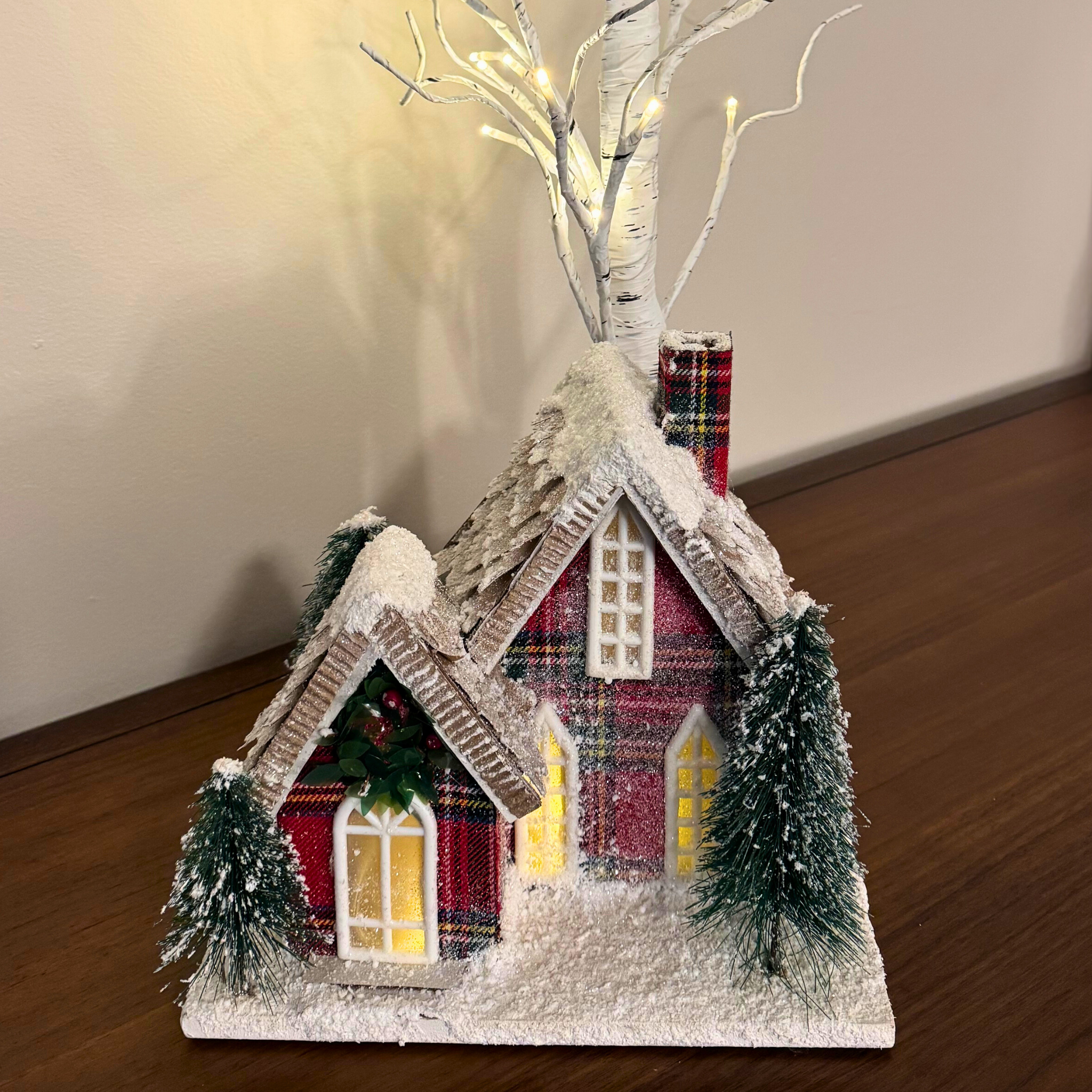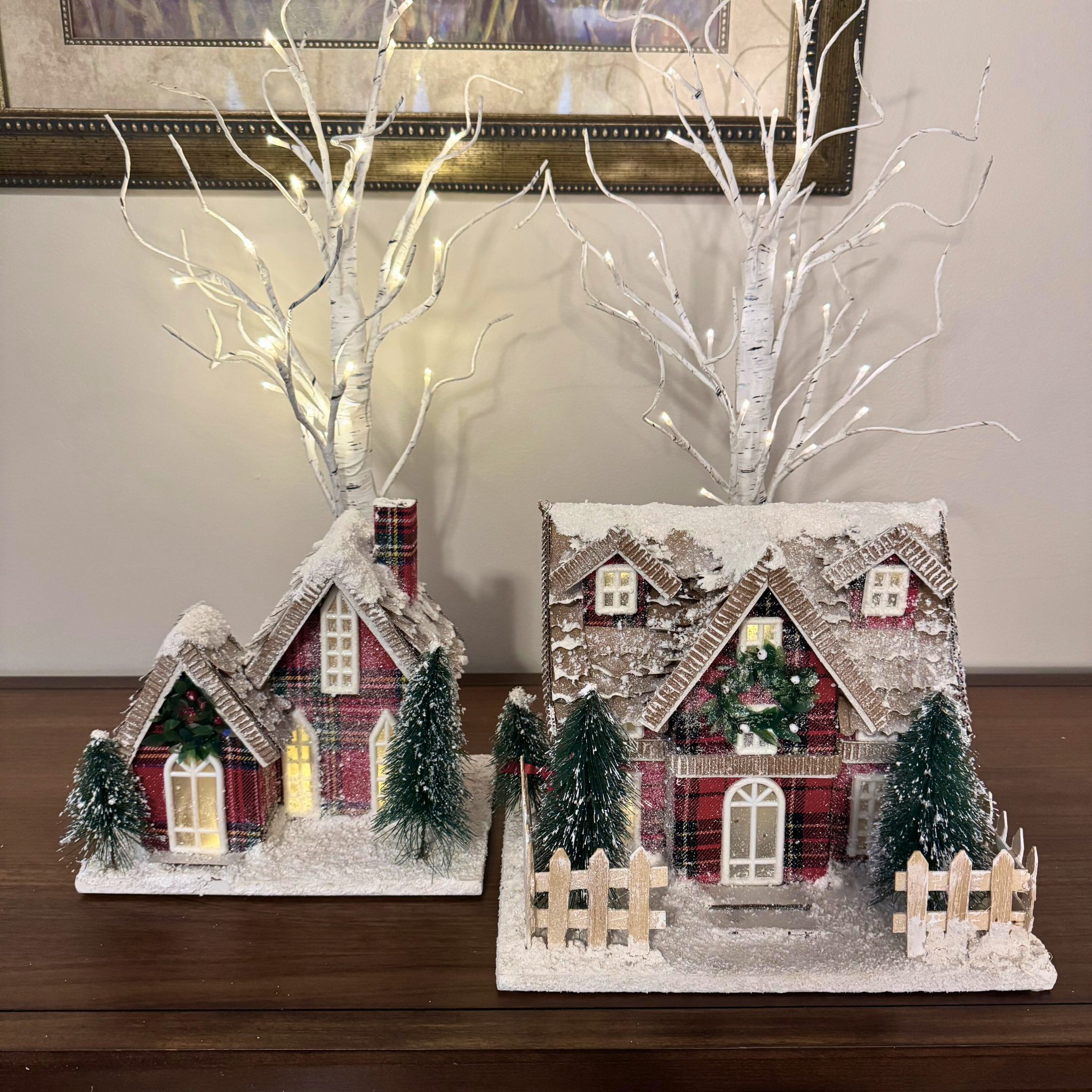 CONDITION: It is pre-owned but in good condition. It is a battery-operated lighted house. We will include a replacement LED light string in case it fails. Each comes with a battery-operated birch tree (batteries not included)