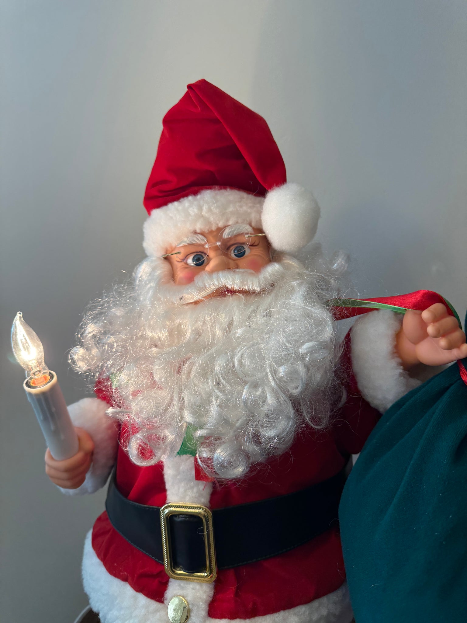 Experience the magic of Christmas with this vintage animated-motion of Santa Claus! This delightful piece is in good condition and perfect for your holiday décor. It features a charming, lighted candle. Don't miss out on this enchanting addition to your festive celebrations!