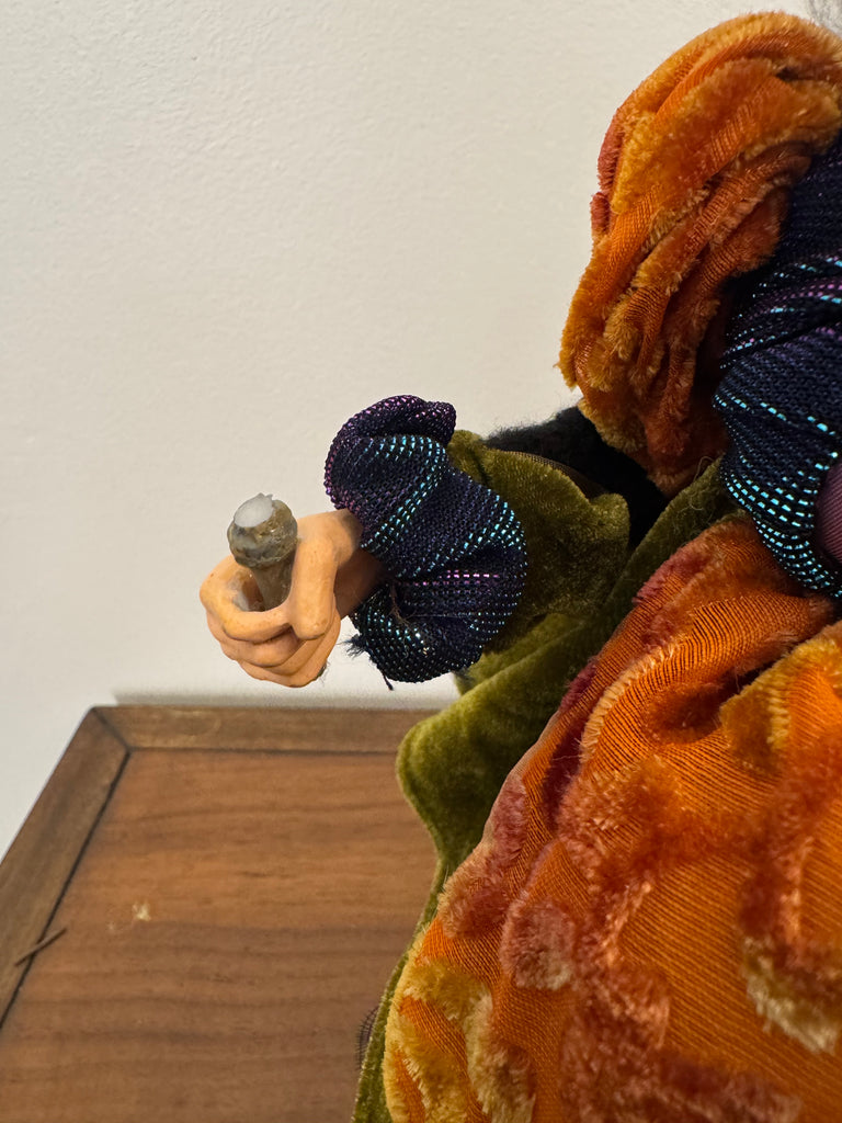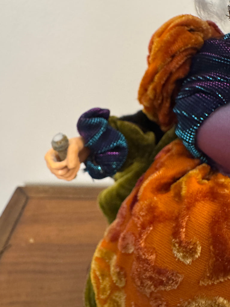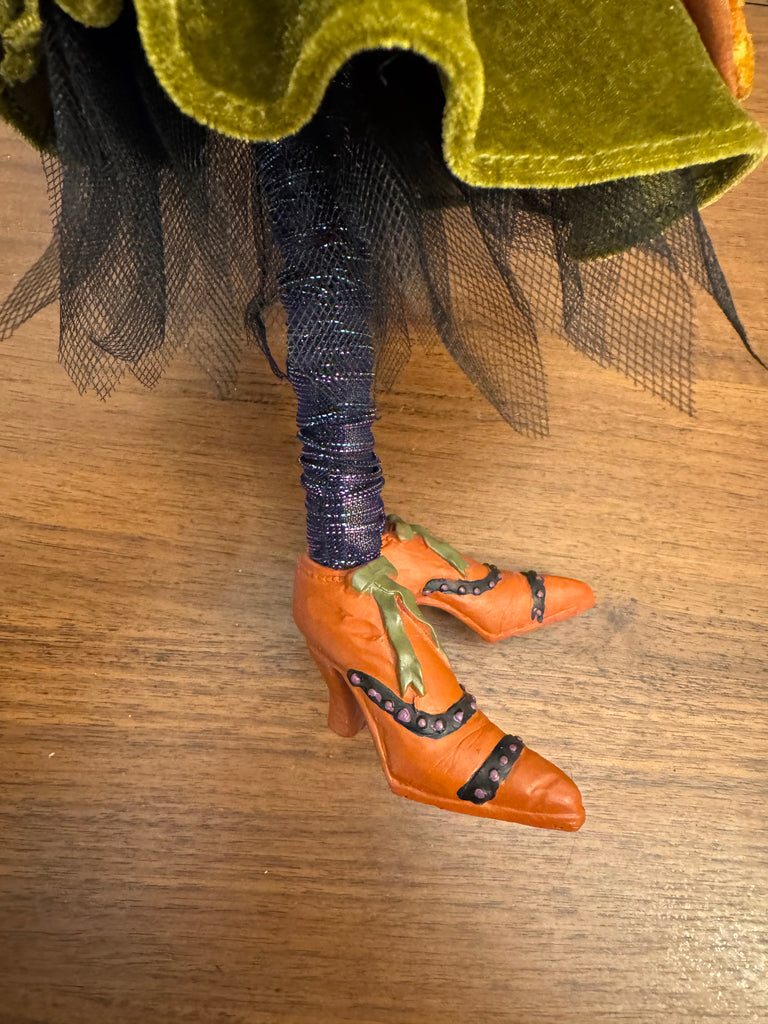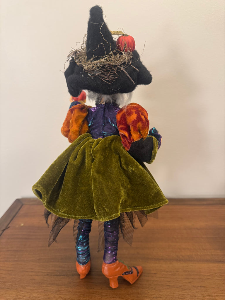 Elevate your Halloween decor with this charming witch figure, adorned in a stunning velvet outfit, topped with an eye-catching puffy hat, and a delightful happy face. Perfect for adding a touch of whimsy to your festive decorations!